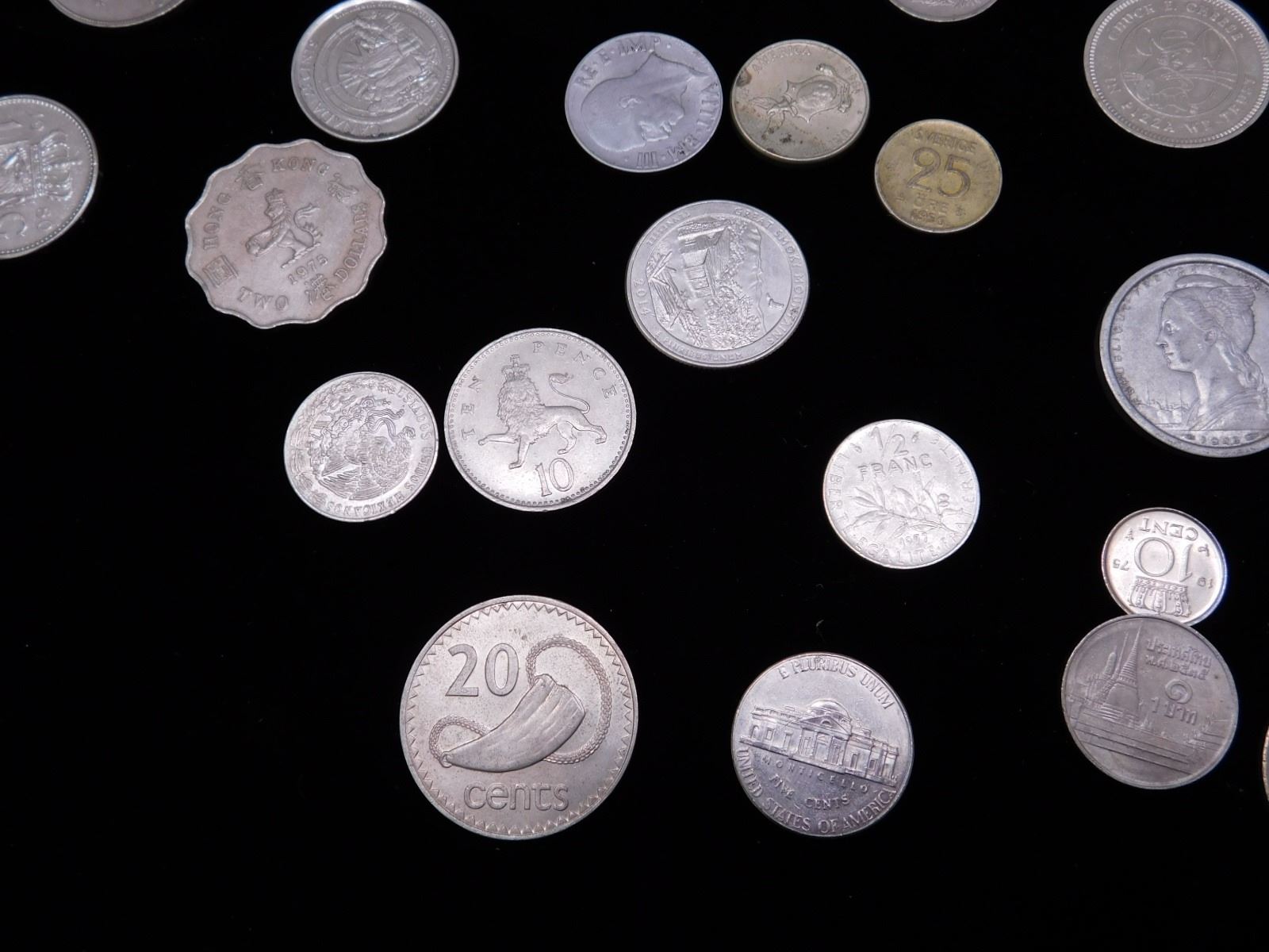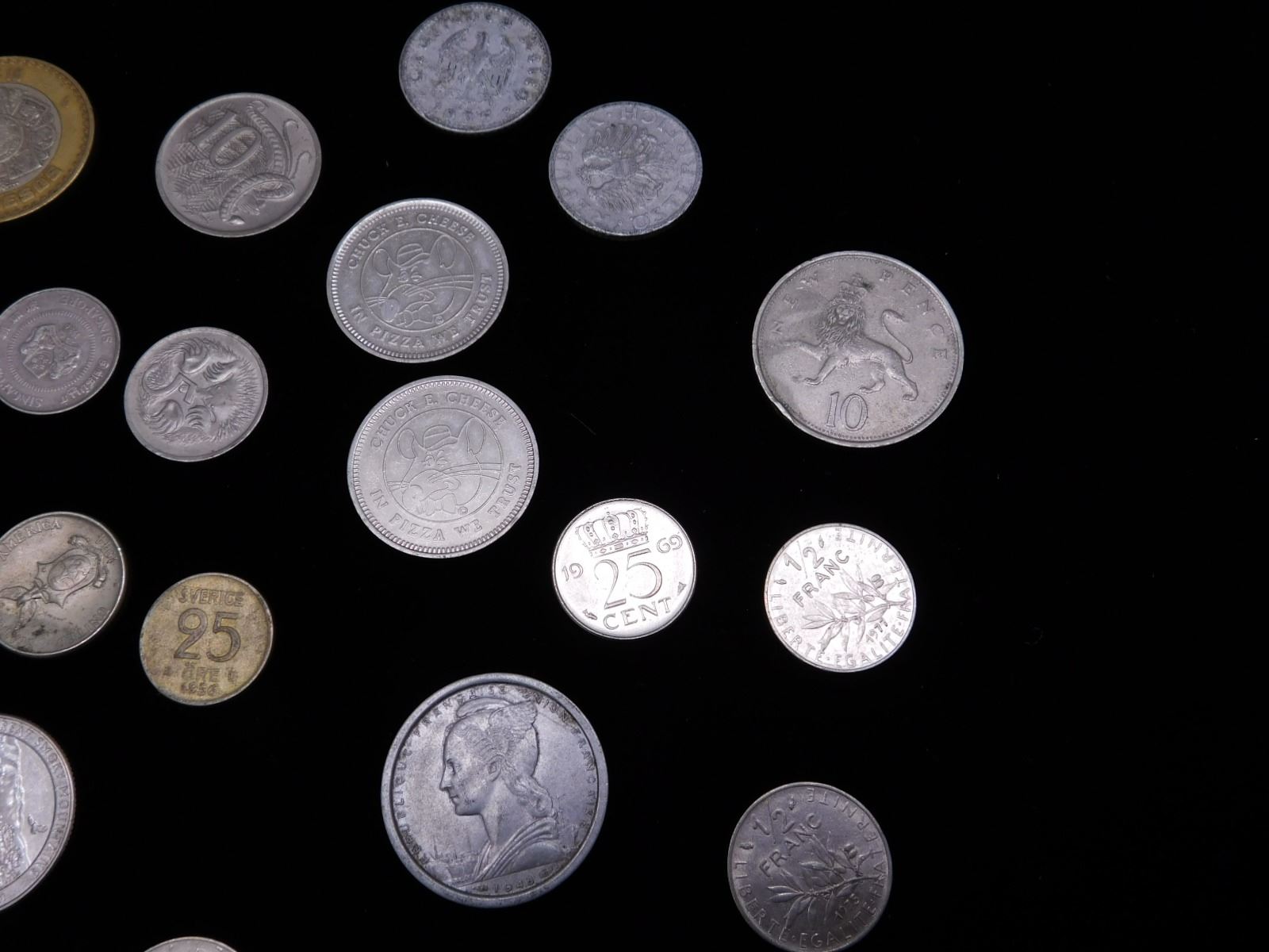 Phillippines nickel with USA on back. Chuck-E-Cheese tokens, Mexico, Germany, Netherlands, Hong Kong, Italy, UK, Singapore, Etc