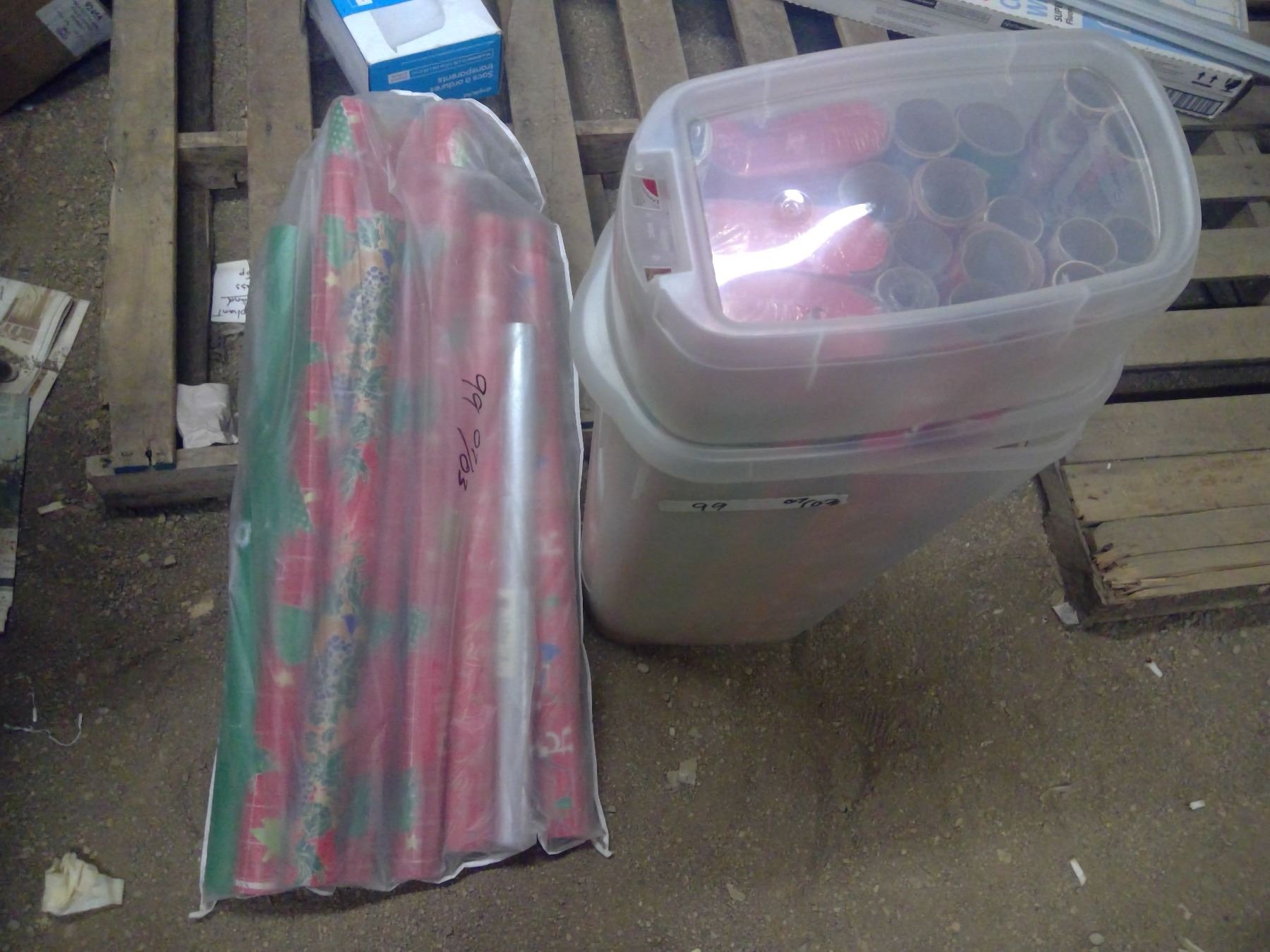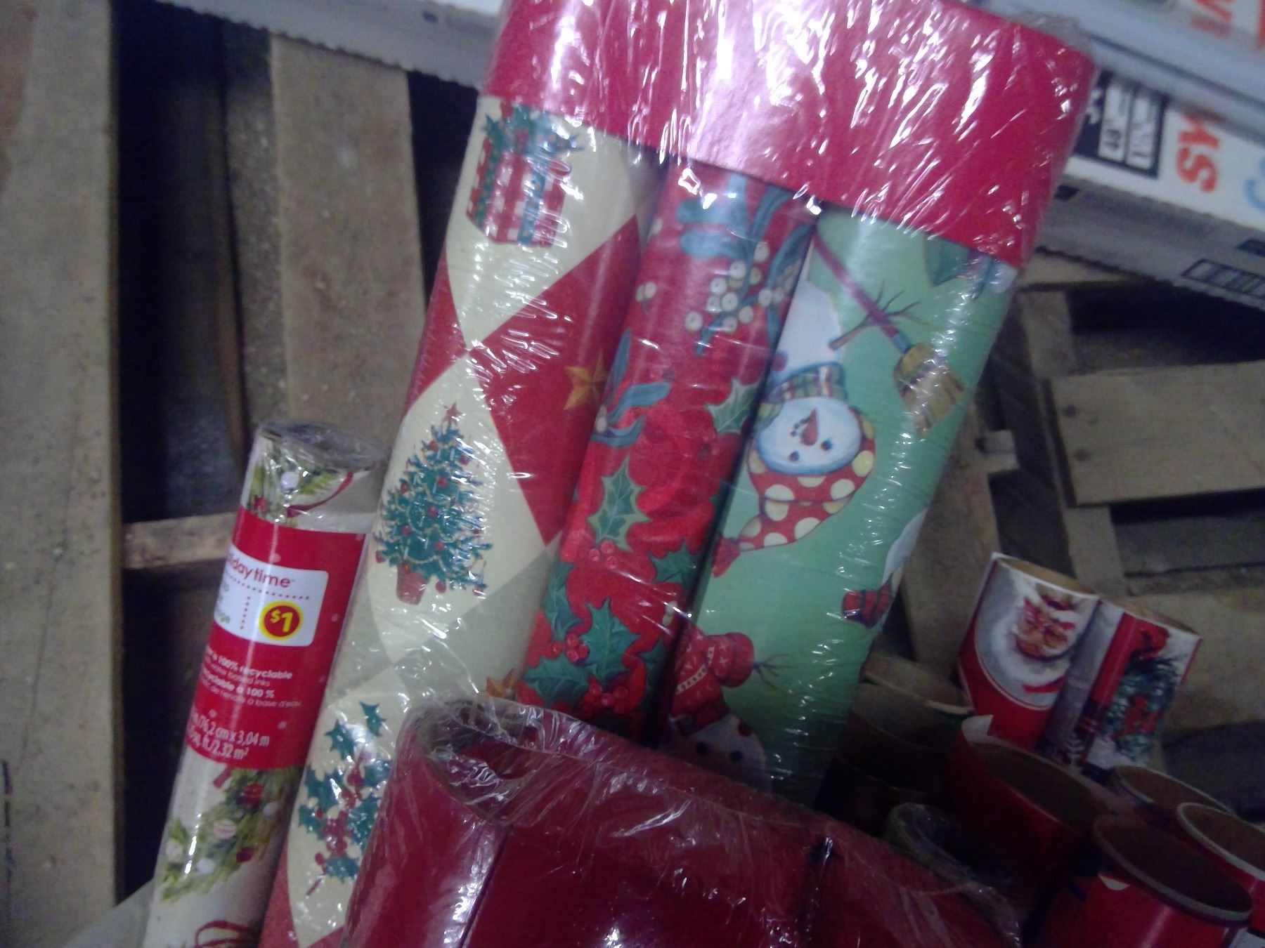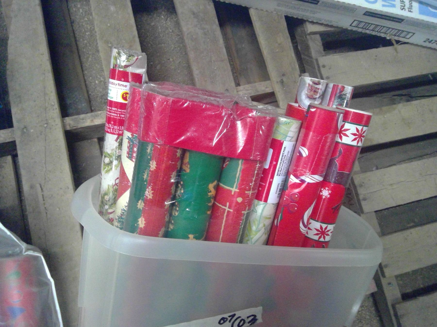 Lot of Xmas Wrapping Paper in Zip-Up Bag and Wrapping Paper Container