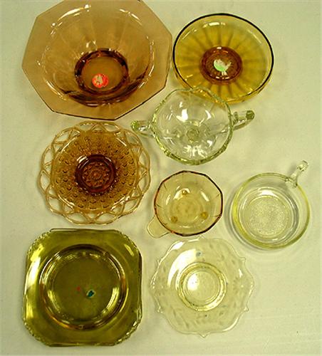 Lot of Yellow depression glass including a bowl 9 1/2" across and six yellow plates 7" across