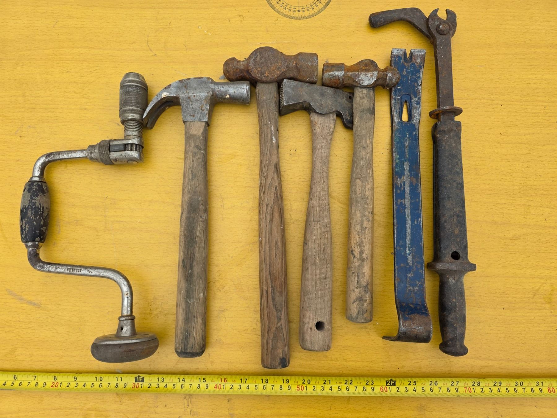 Lot of antique hammers and tools