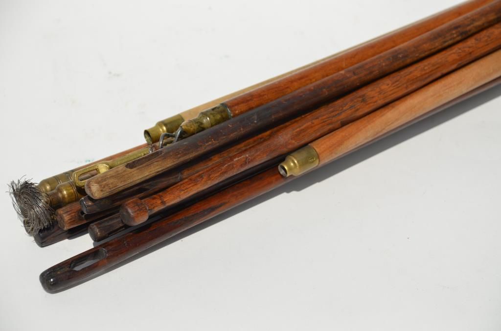 Lot of antique shotgun cleaning rods, memorabilia, loading tools, shells, etc. Est.: $150-$300.