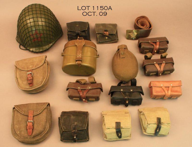 Lot of approx. 20 pcs. of misc. Eastern block military equipment, belts and helmet. Very good condition. Est. $200 - $400