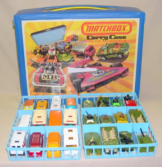 Lot of approx 24 mostly 1970's Vehicles w/ carrying Case--most in near mint condition, case has wear
