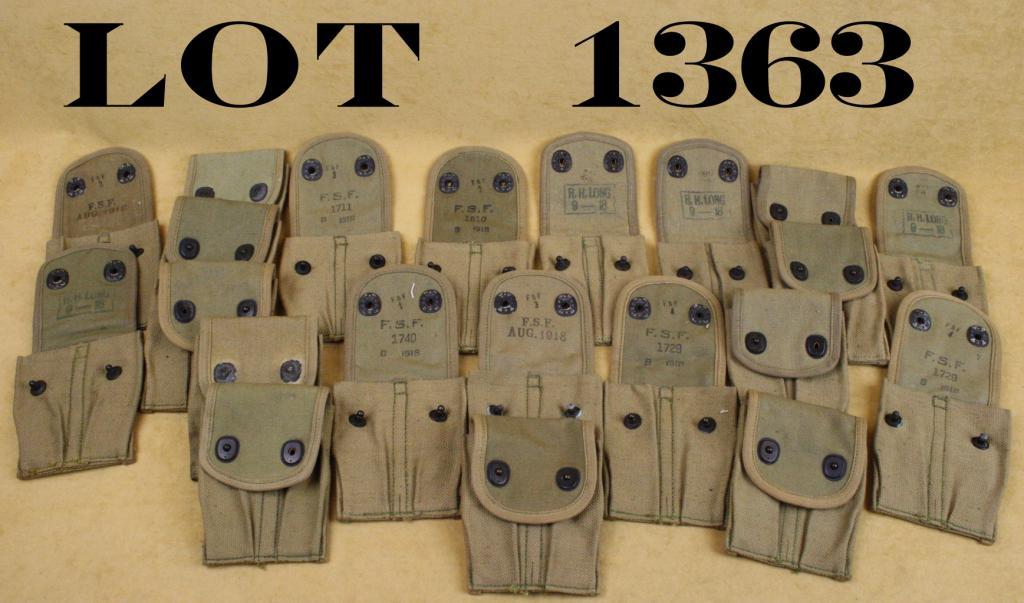 Lot of approx. 25 WW I era US double magazine pouches for 1911 style pistol magazines, most in excellent condition and by different makers, particularly by R.H. Long and F.S.F. Est.: $75-$125.