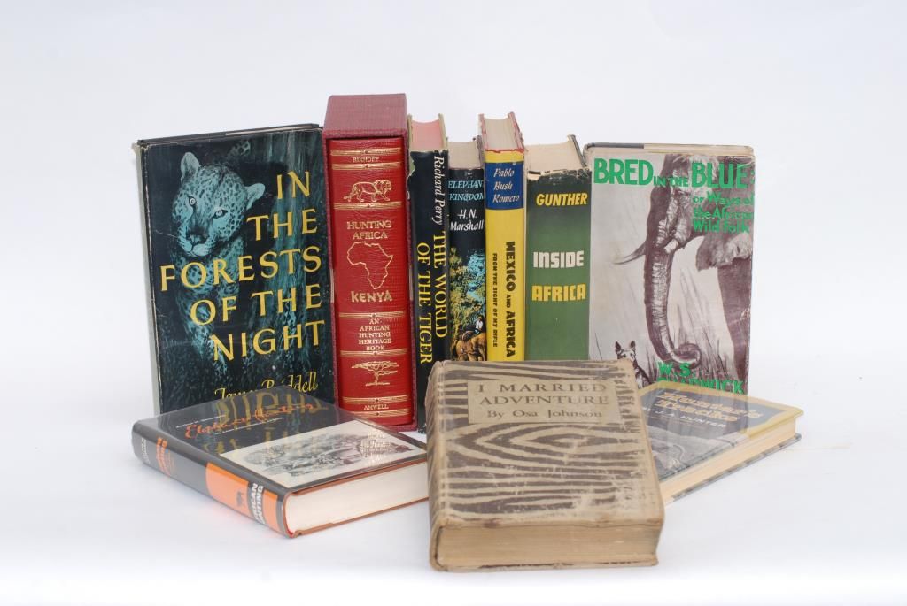 Lot of approx. 25 books on hunting, most out-of-print, most are hardback and cover hunting all over the world; part of the late Robert Petersen’s personal library from his home in Beverly Hills, CA. From the estateof Robert E. Petersen. Est.: $250-$500.