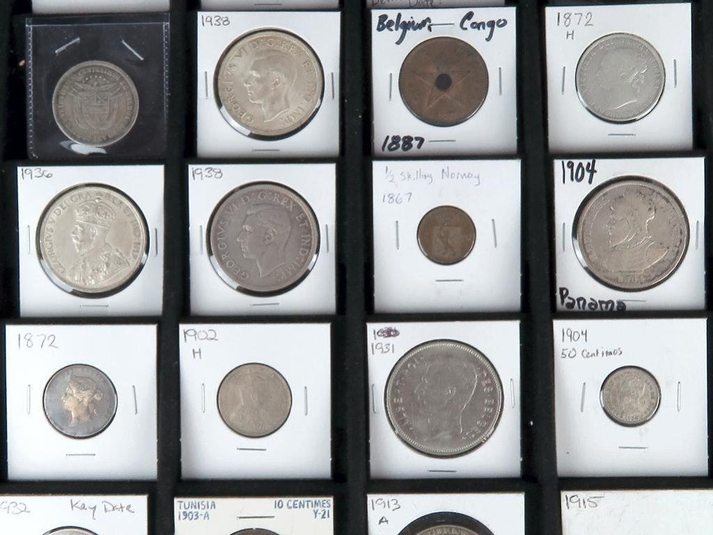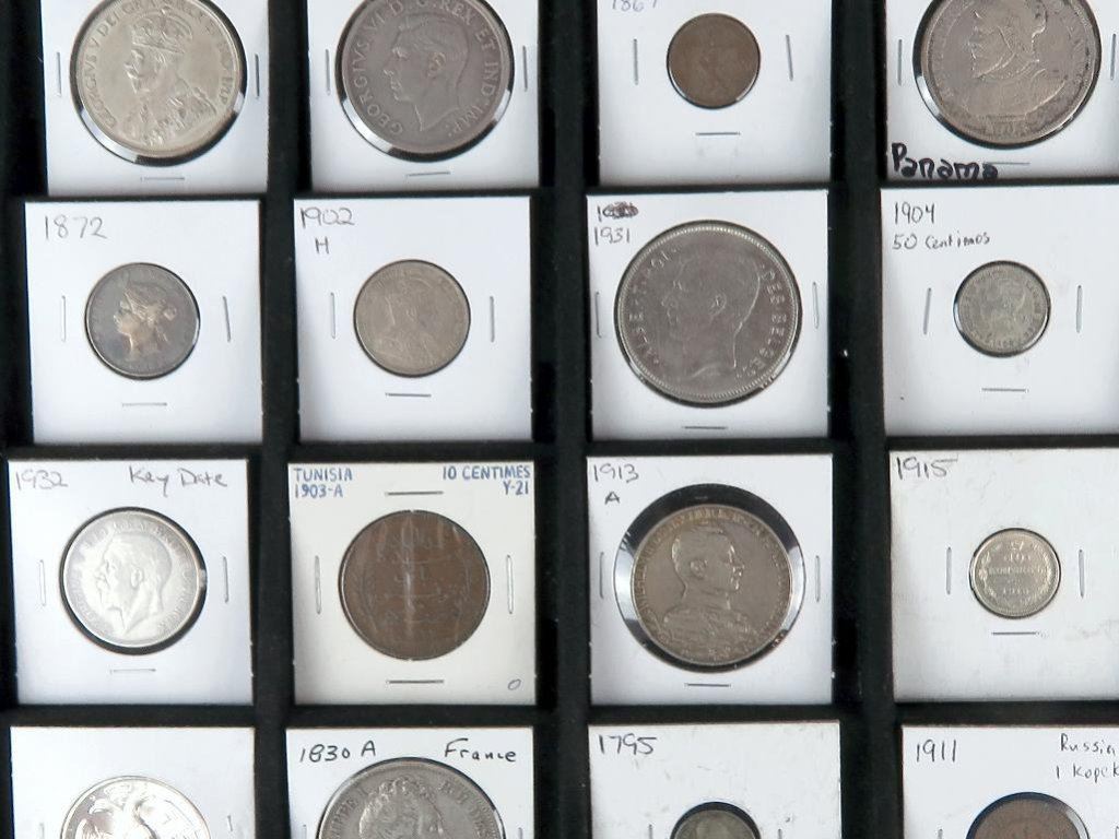 Lot of approx (28) misc. mostly Foreign Coins Tokens. As Is!