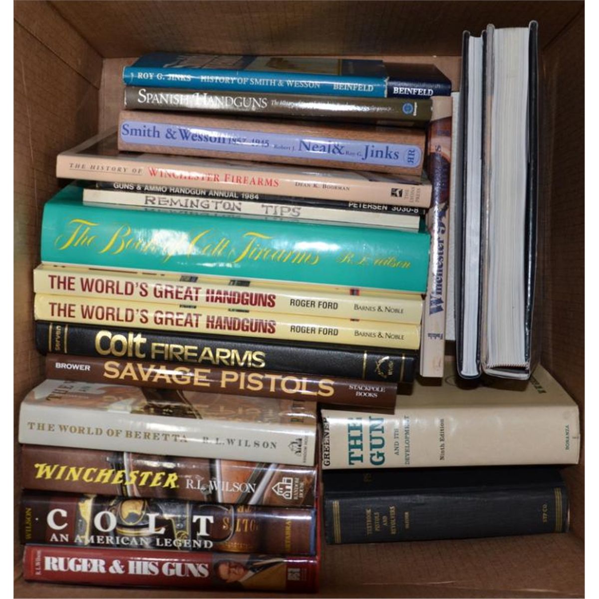 Lot of approx. 33 mostly hard cover gun books covering a variety of makes, models and periods, from antique to modern; thousands of pages of reference and pictures. Est.: $250-$450.