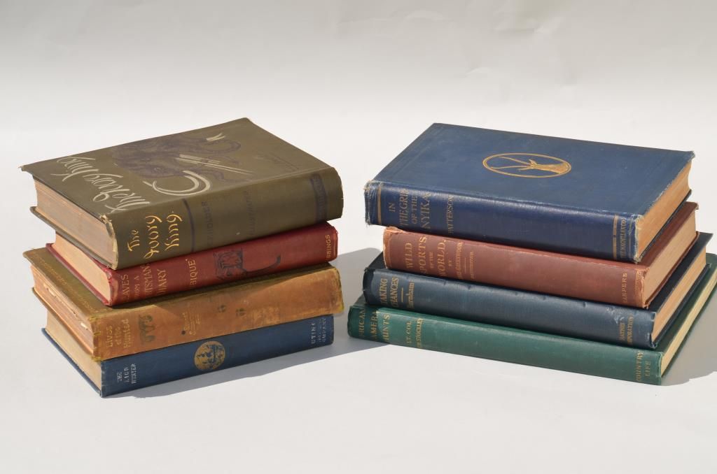 Lot of approx. 35 mostly hardback and out-of-print books on hunting in Africa and other exotic places from the personal library of the late Robert E. Petersen’s home in Beverly Hills, CA. From the estate of Robert E. Petersen. Est.: $300-$600.