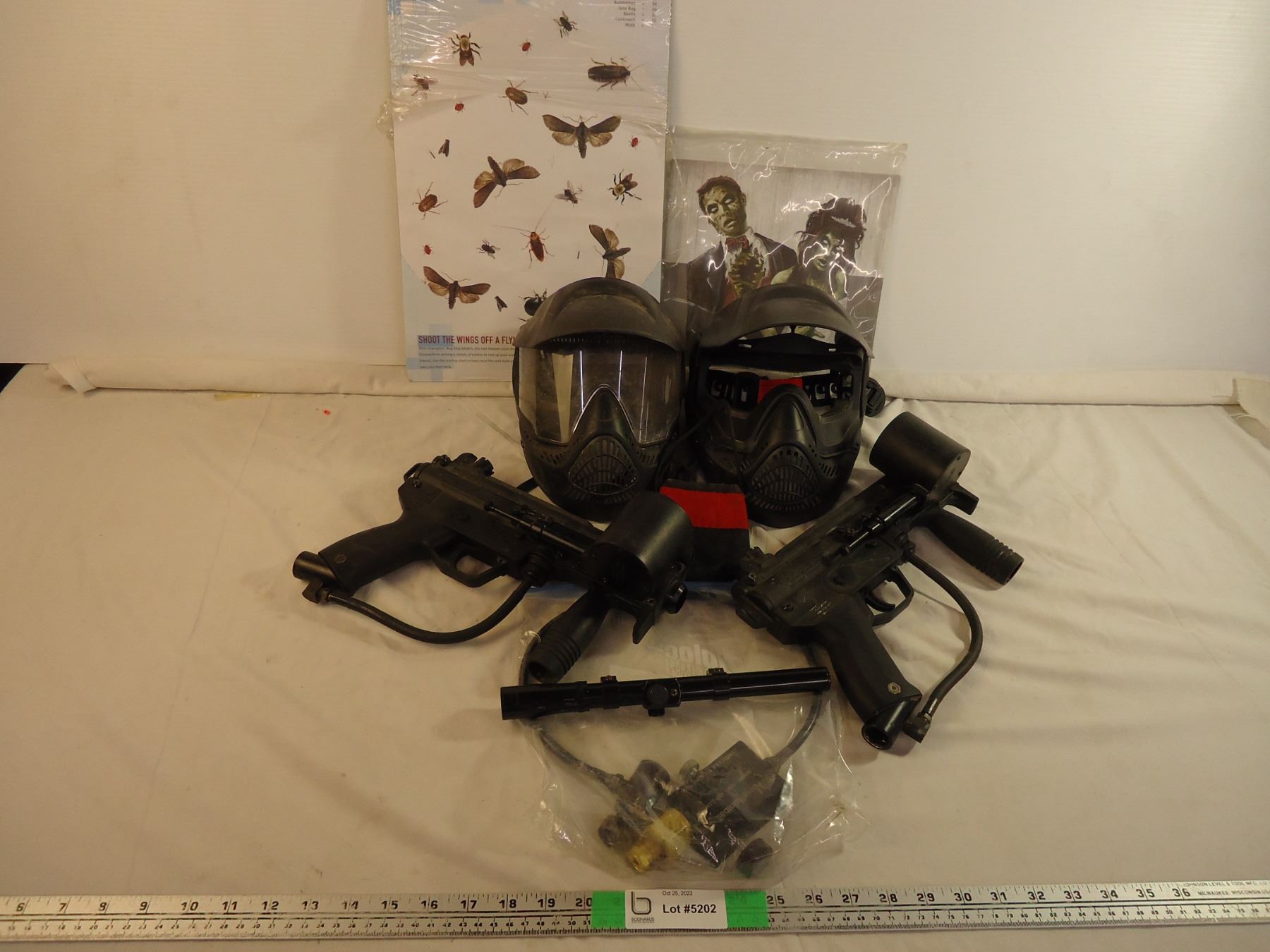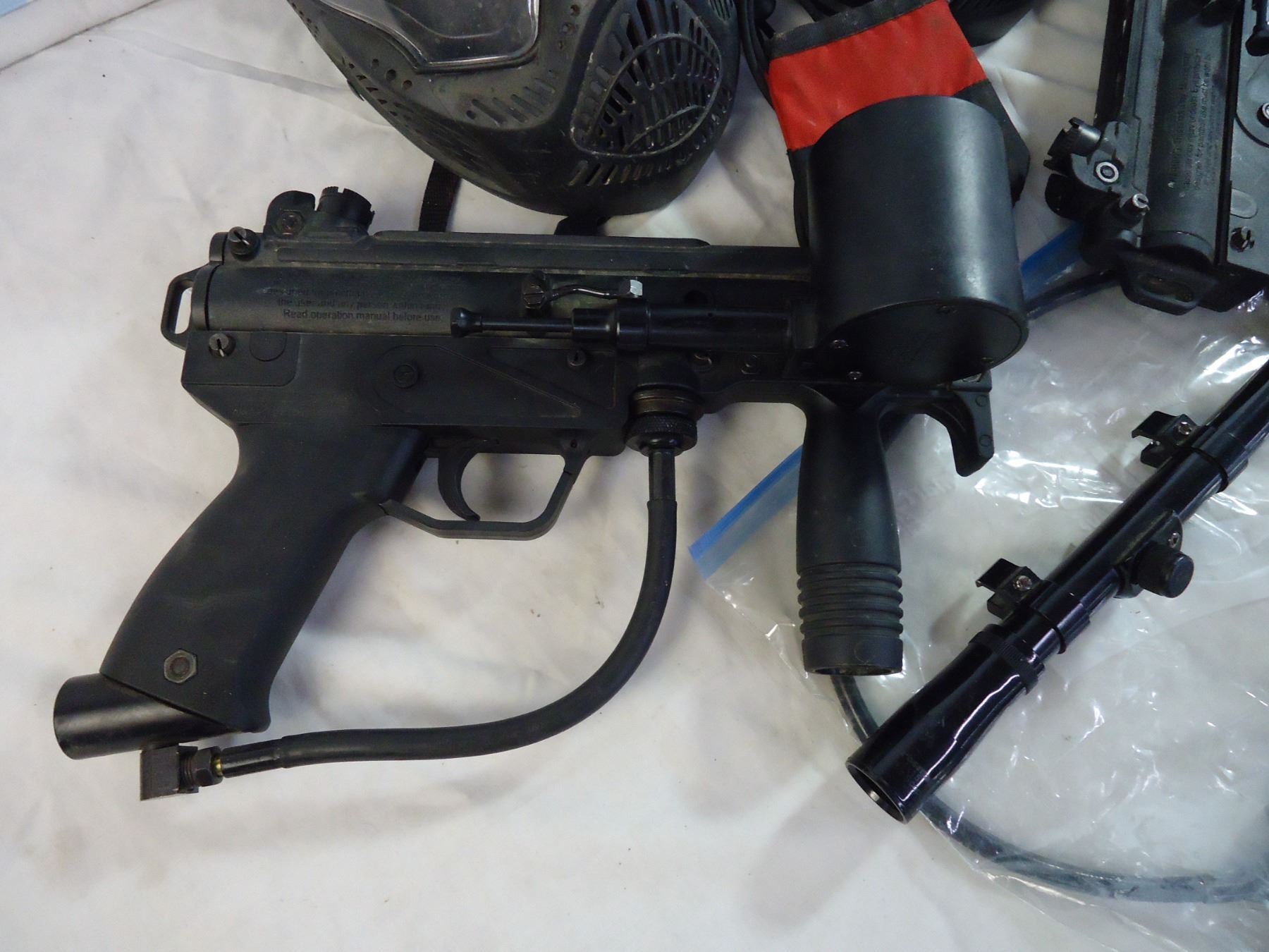 Lot of assorted Paintball, 2 guns,2 shields,1 scope,Co2 Adapter,and targets