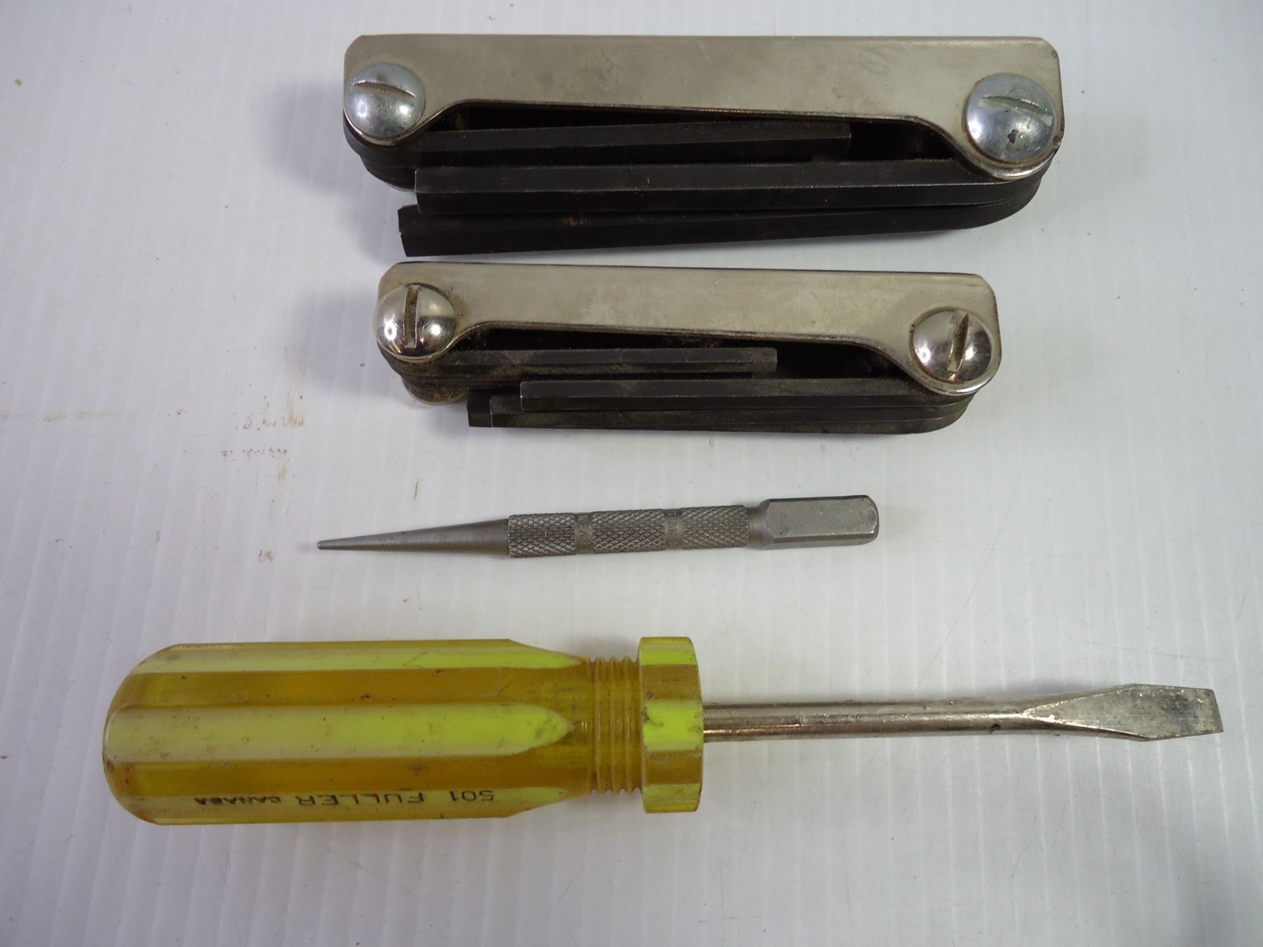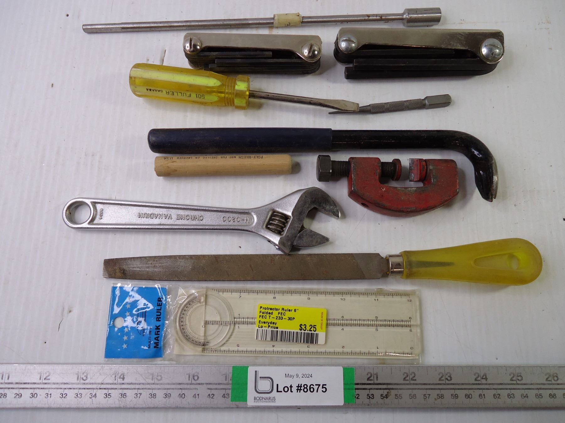 Lot of assorted Tools-(2) Hex Key Sets, Nail Puller, Crescent Wrench and more