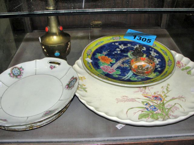 Lot of assorted collectors plates, brass vase, etc