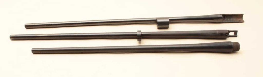 barrel measuring 24” with the sight removed and reblued. Good bore. 2. Browning BPS 20GA pump shotgun barrel measuring 28” with vent rib, 2 ¾” and 3” chamber. Japan marked. Near fine and full choked. Est.: $50-$100
