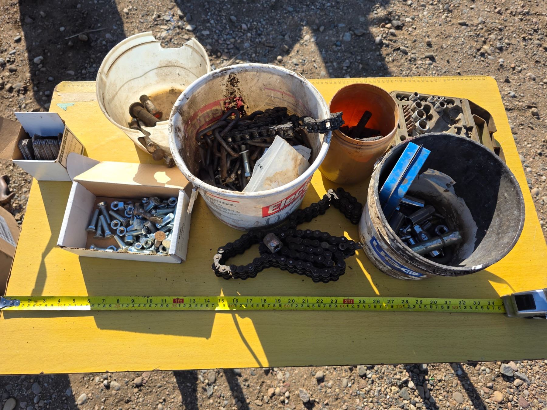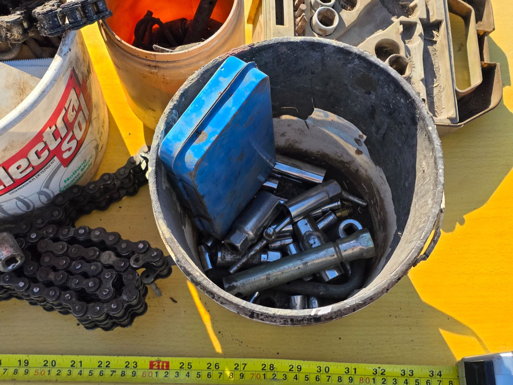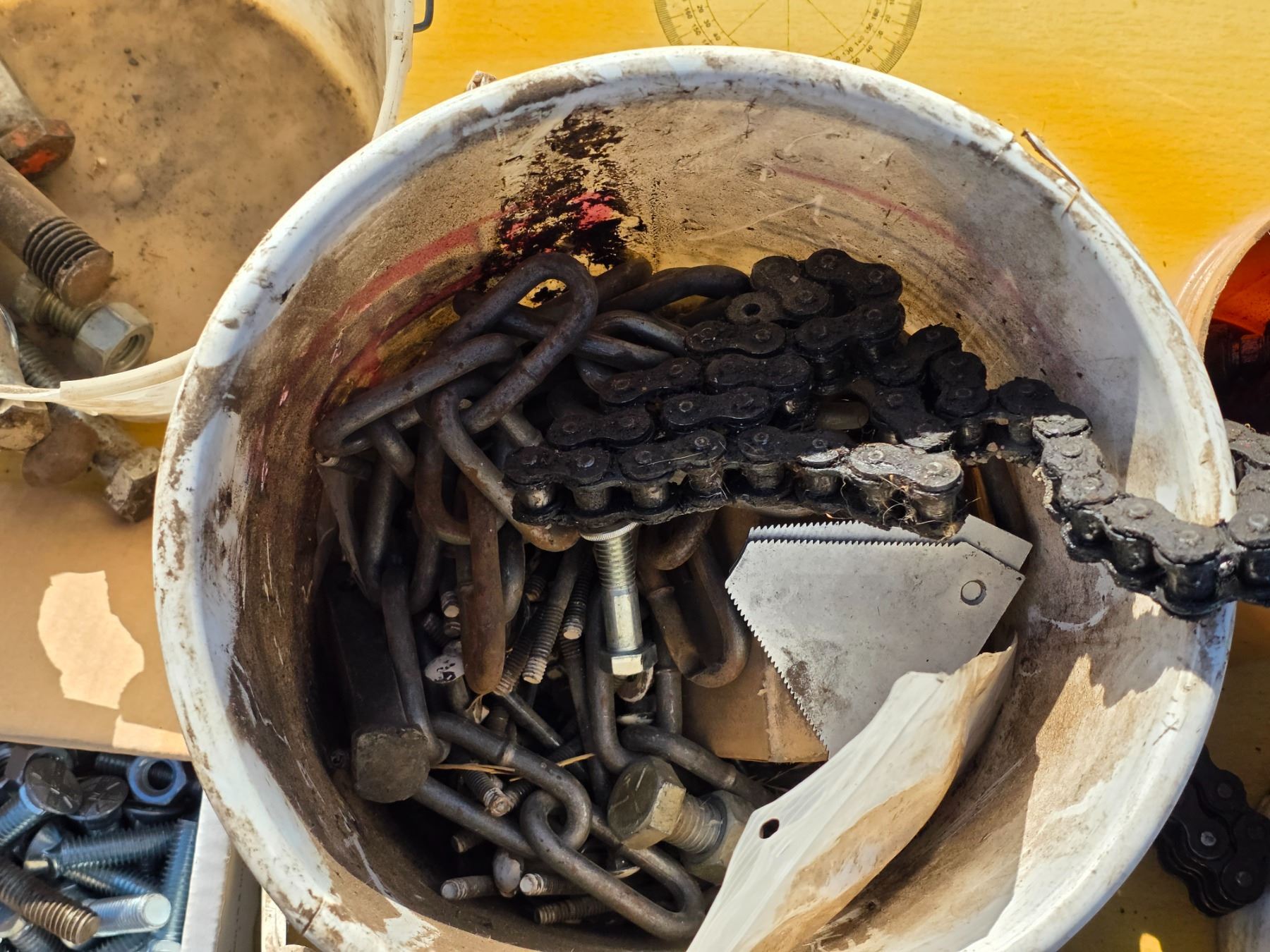 Lot of bolts chains and socket bits