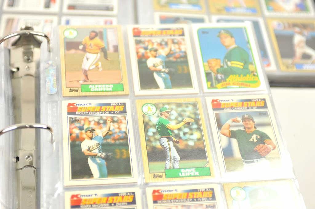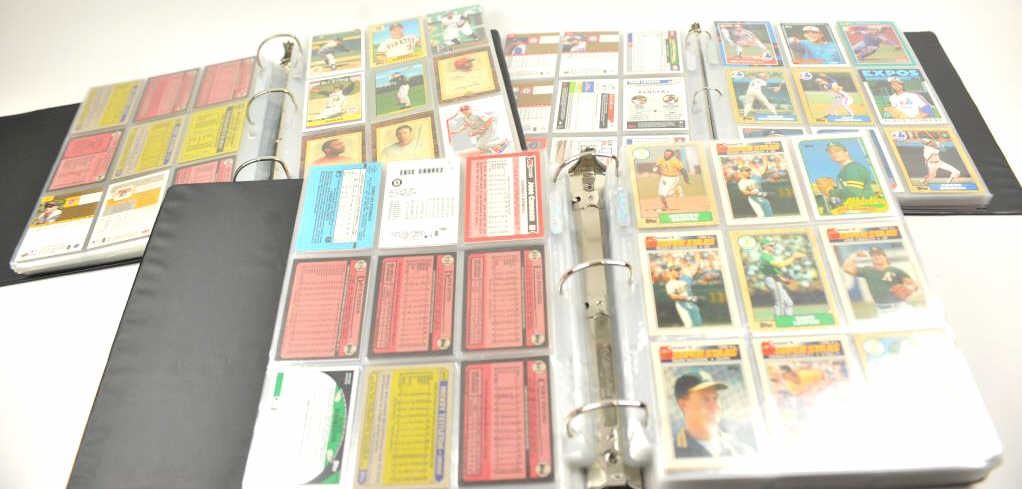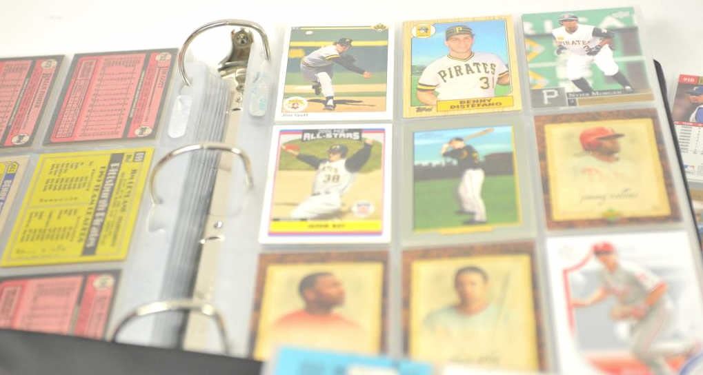 Lot of collectable MLB trading cards in three binders with protective sheets. The lot includes; Hall of Fame, foil, hologram and limited edition cards by Topps, Upper Deck, Fleer, Score and others. The lot includescards for Frank Robinson, Pete Rose, Nolan Ryan, Ken Griffey Jr., Roy Halladay and many other superstars. A lifetime of collecting with many former stars. All cards are in very good to excellent condition. Est.:$150-$300.