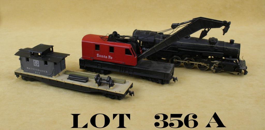 Lot of collectible original HO scale train cars including an engine and two Santa Fe marked cars in overall good condition. Est.: $50-$75.