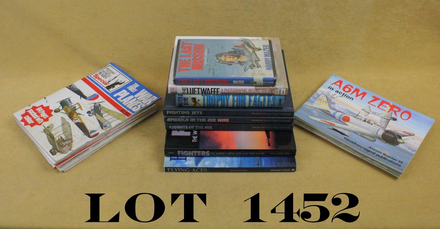 Lot of collector books and magazines primarily on military aircraft including three volumes of Time-Life books on the epic of flight; Ries’ book on The Luftwaffe; Fighters of the World; Flying Aces andapprox. a dozen soft cover and magazines on early to later aircraft. Est.: $50-$75.