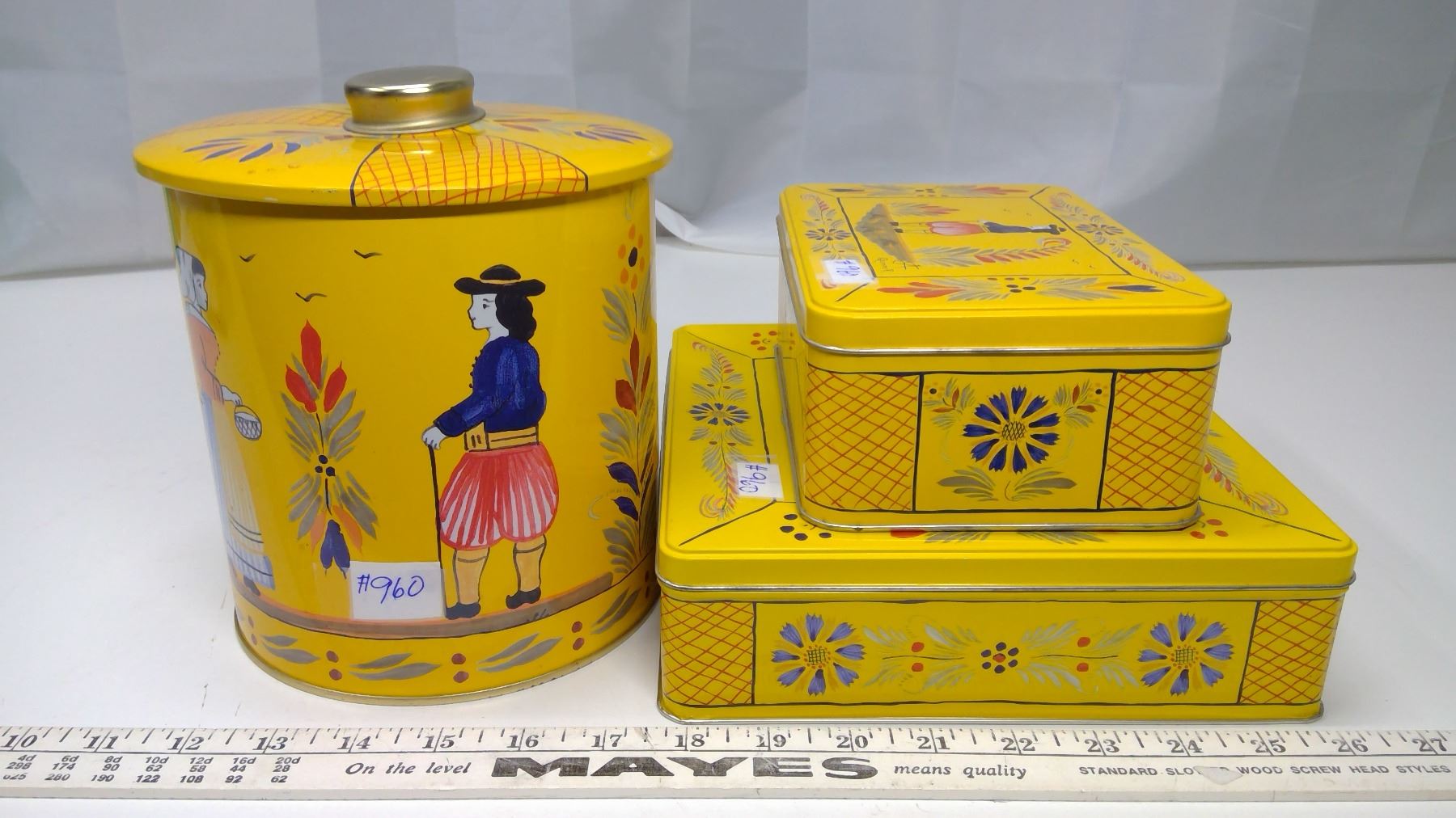 Lot of colourful biscuit tins from Brittainy, France (3)