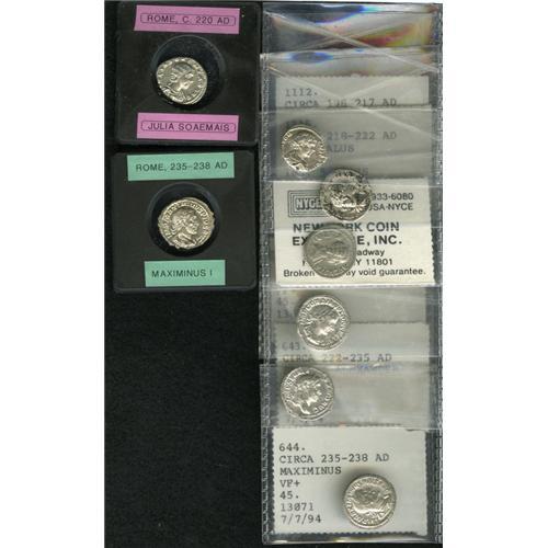 <B>Lot of eight Severan period and later denarii.</B></I> Includes: Julia Domna // Caracalla // Elagabalus // Julia Soaemias // Severus Alexander // Maximinus I Thrax (2) // Gordian III. Average Fine to XF.