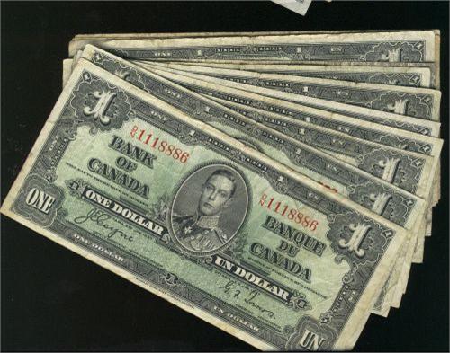 Lot of eleven 1937 $1 notes with Coyne-Towers signatures, BC-21d. Grades vary from VG to Fine