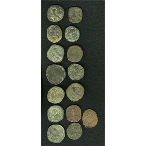 <B>Lot of fifteen Byzantine folles.</B></I> Includes: Mostly anonymous issues of the 11th century, all depicting Christ Pantokrator. <B>Average Fair</B></I> to <B>VF,</B></I> most in need of light cleaning.<BR><BR><b>Shipping:</b> Coin/Currency (<a target="_blank" href="http://www.heritageauctions.com/common/shipping.php">view shipping information</a>)