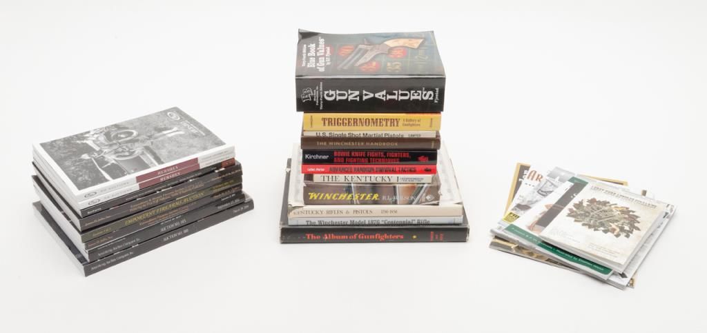 Lot of firearms collector reference books and many auction catalogs including “Kentucky Rifles & Pistols 1750-1850” by Johnston; Houze’s “The Winchester Model 1876 ‘Centennial’ Rifle”; “Winchester: An American Legend” by Wilson; andmore. Est.: $200-$400.