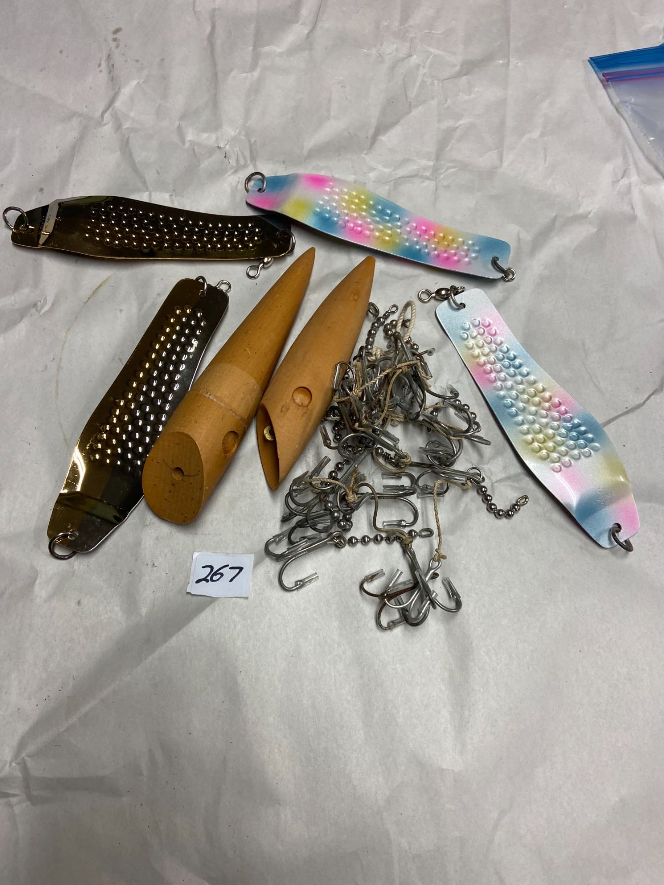 Lot of fishing flashes, hooks only and 2 homemade lures