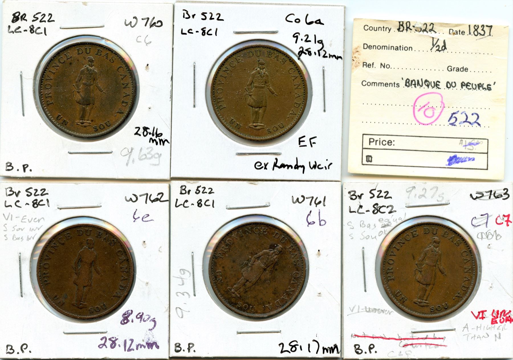 CH LC-8C1, Courteau 6, VF+; CH LC-8C1, Courteau 6a, EF; CH LC-8C1, Courteau 6b, VF; CH LC-8C1, Courteau 6e, VG; CH LC-8C2, Courteau 7, VF. 5pcs.