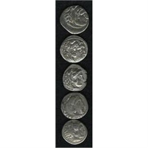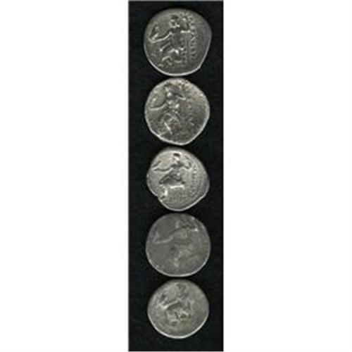<B>Lot of five Macedonian drachms of Alexander III.</B></I> All coins: Head of Herakles right, wearing lion's skin headdress / Zeus seated left, holding eagle and sceptre. <B>Average Fair</B></I> to <B>Fine.</B></I><BR><BR><b>Shipping:</b> Coin/Currency (<a target="_blank" href="http://www.heritageauctions.com/common/shipping.php">view shipping information</a>)