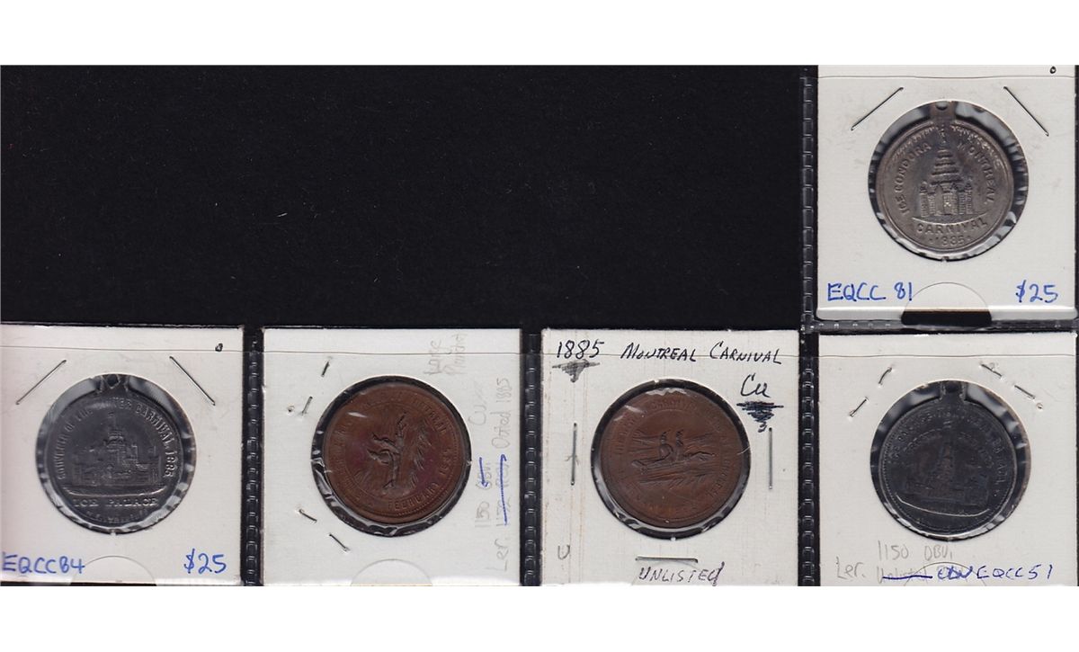 Lot of five Medals - CH-EQCC-81 WM, CH EQCC-84 WM, unlisted Muled Obv. of Ler 1150 and Obv. CH EQCC-54 Copper (2) and an unlisted muled Obv of Ler 1150 and Obv. Of CH EQCC-51 WM. EF-AU. 5 Pcs.