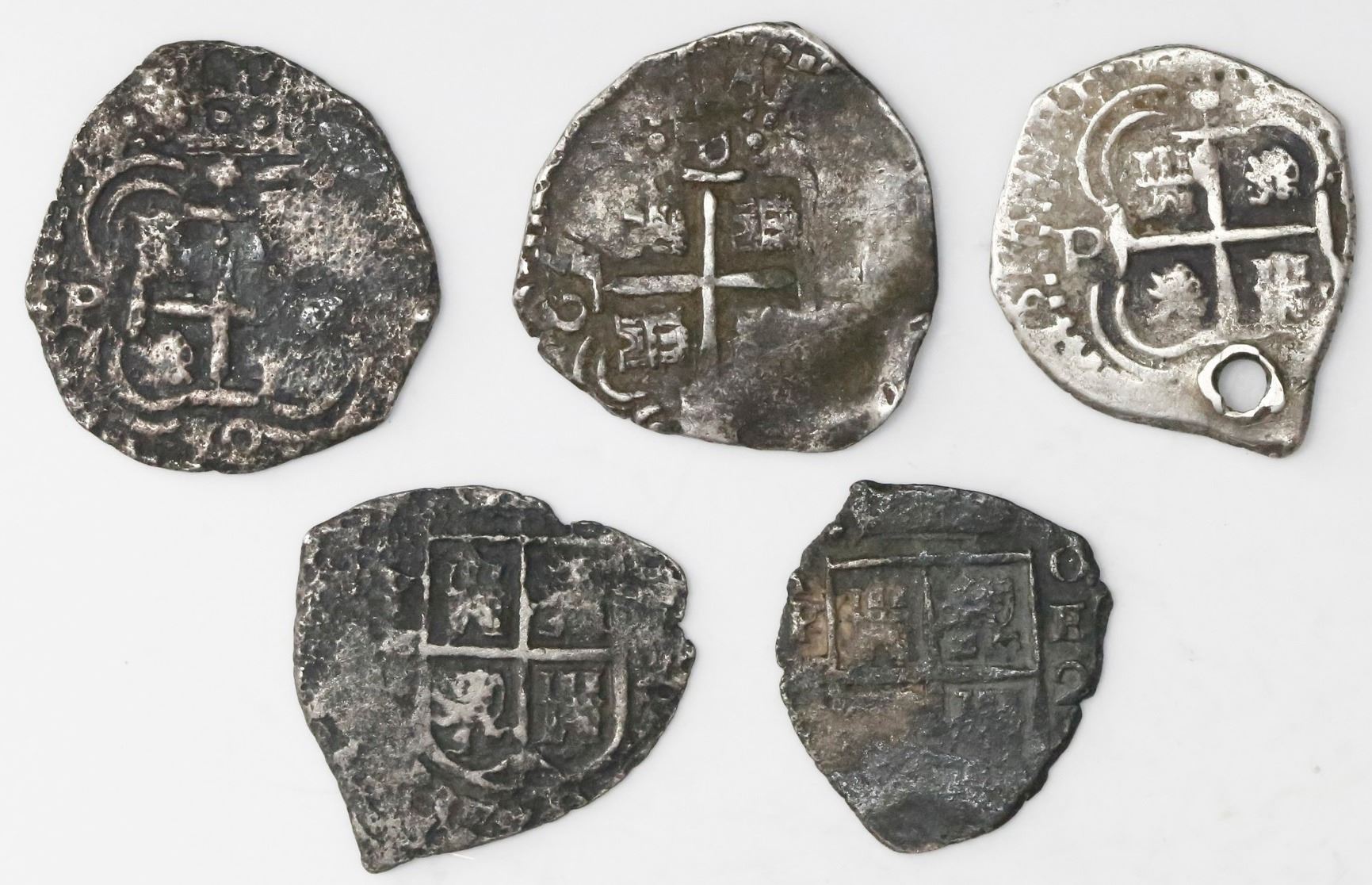 Lot of five Potosi, Bolivia, cob 1R, 1652 Transitionals, various McLean Types.