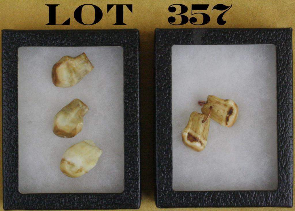 Lot of five elk’s teeth, classically used in making jewelry like watch fobs, lodge medallions, etc. Est.: $50-$100.