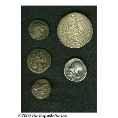 Lot of five miscellaneous Greek coins. Includes: Si Lot of five miscellaneous Greek coins.