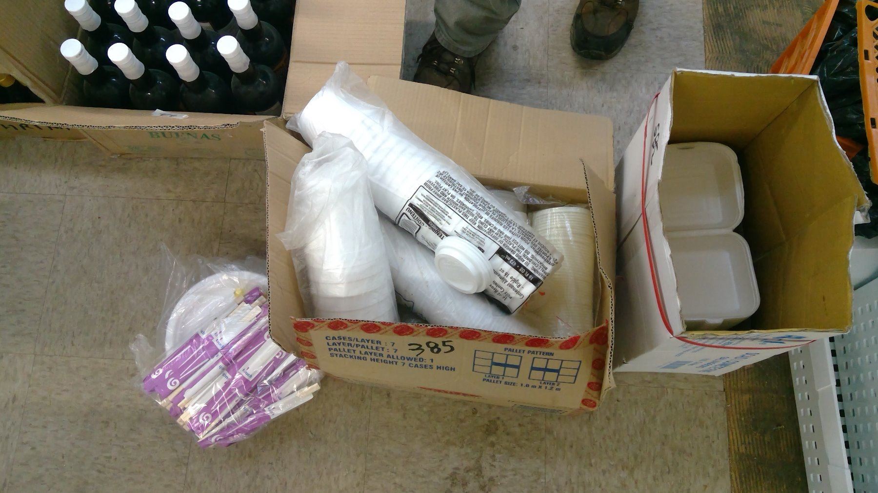 Lot of foam bowls, lids, plates, takeout cont., etc