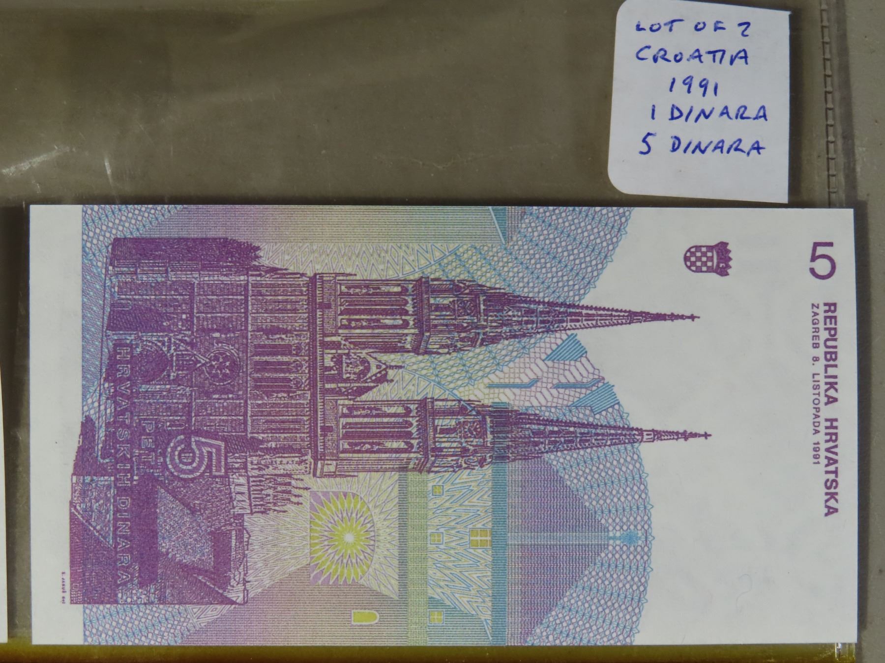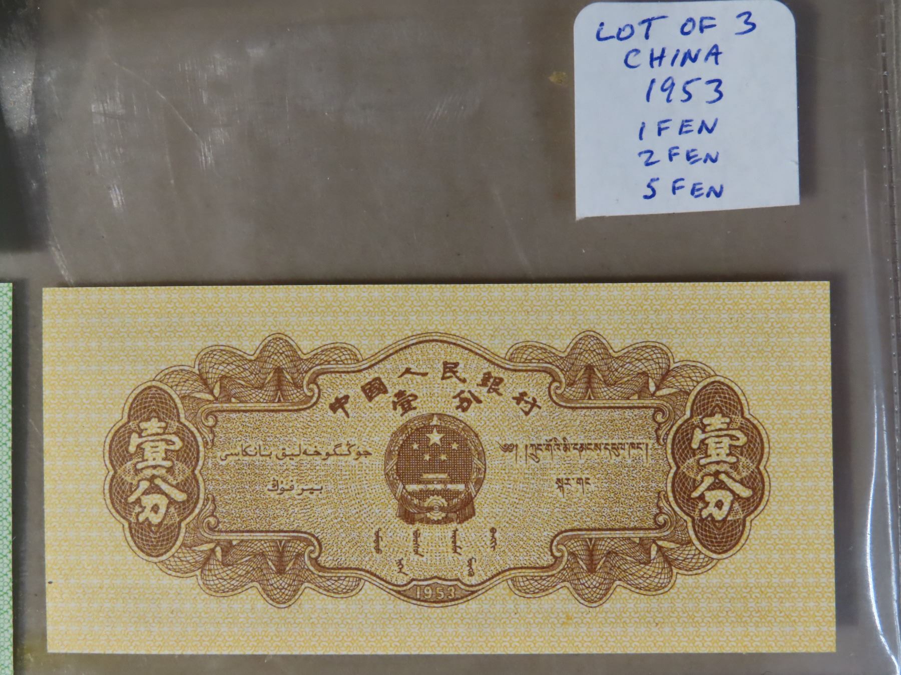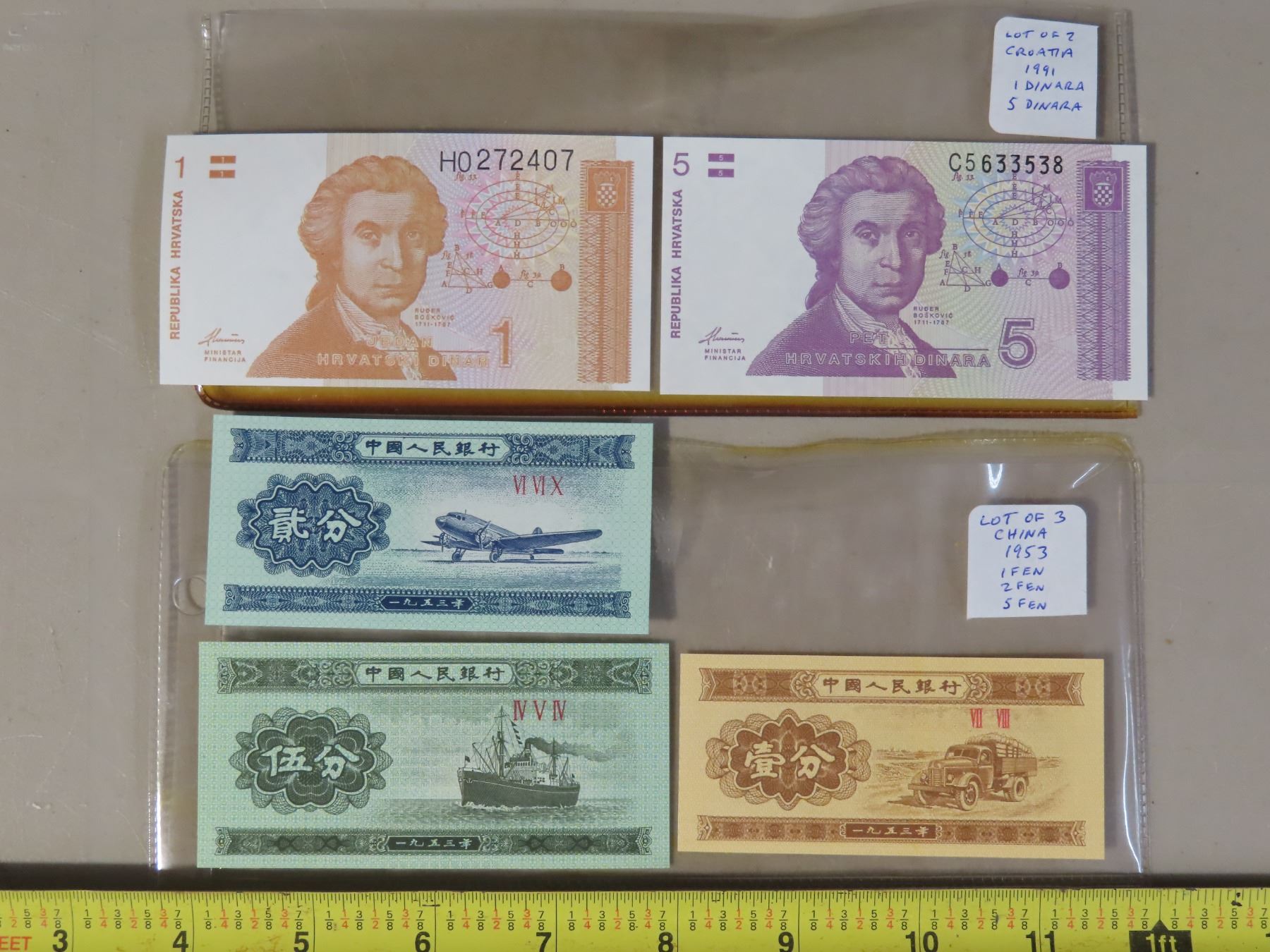 Lot of foreign Bank Notes: 1991 Croatia 1 Dinara & 5 Dinara + 1953 China 1 Fen, 2 Fen, & 5 Fen notes