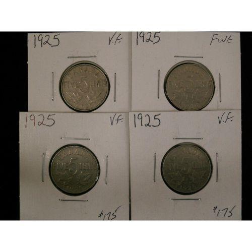 Lot of four 1925 5¢, Average Fine -12 or better,