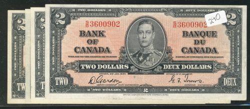 Lot of four 1937 $2 notes. All BC-22b Gordon-Towers in EF condition.
