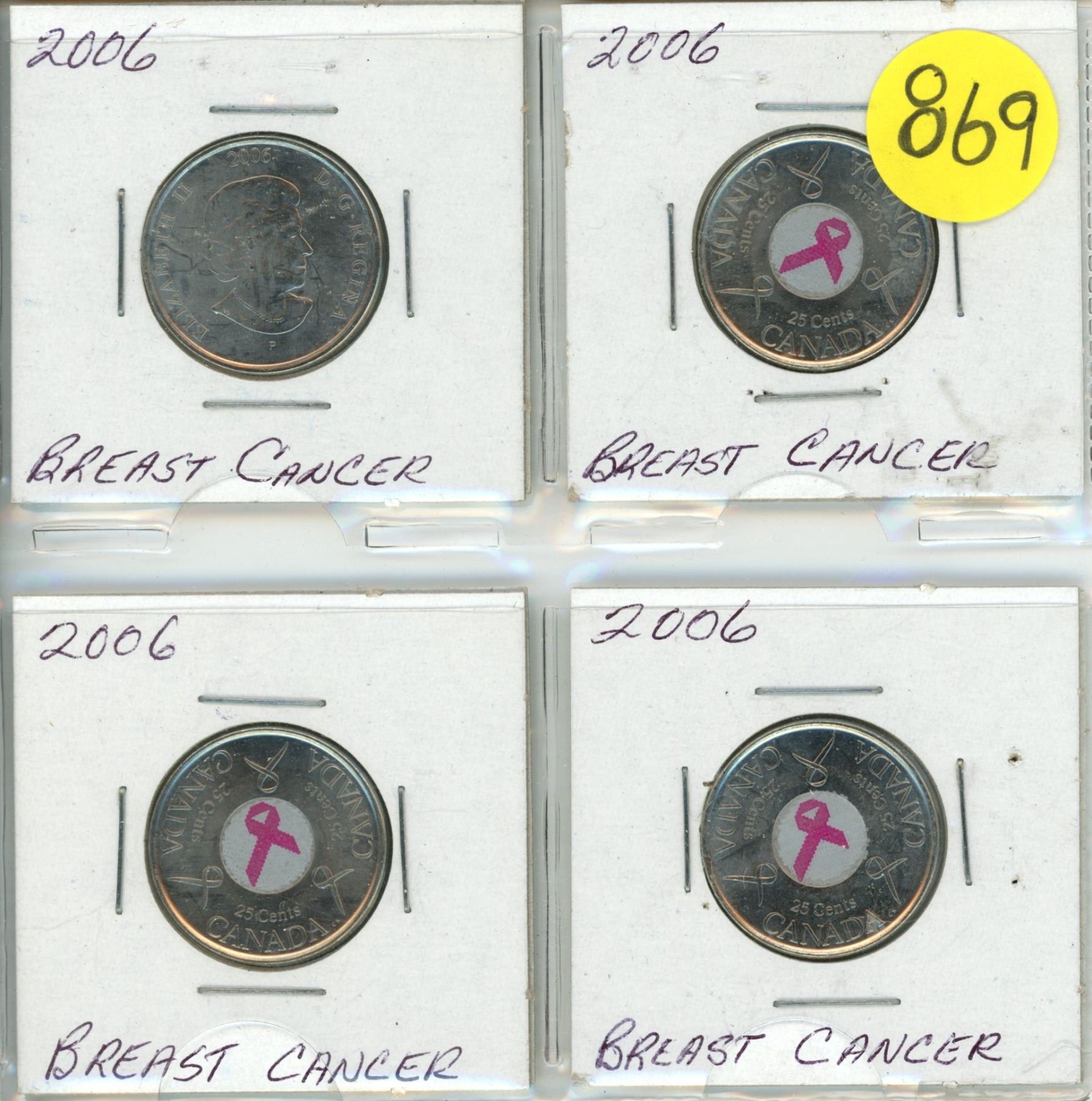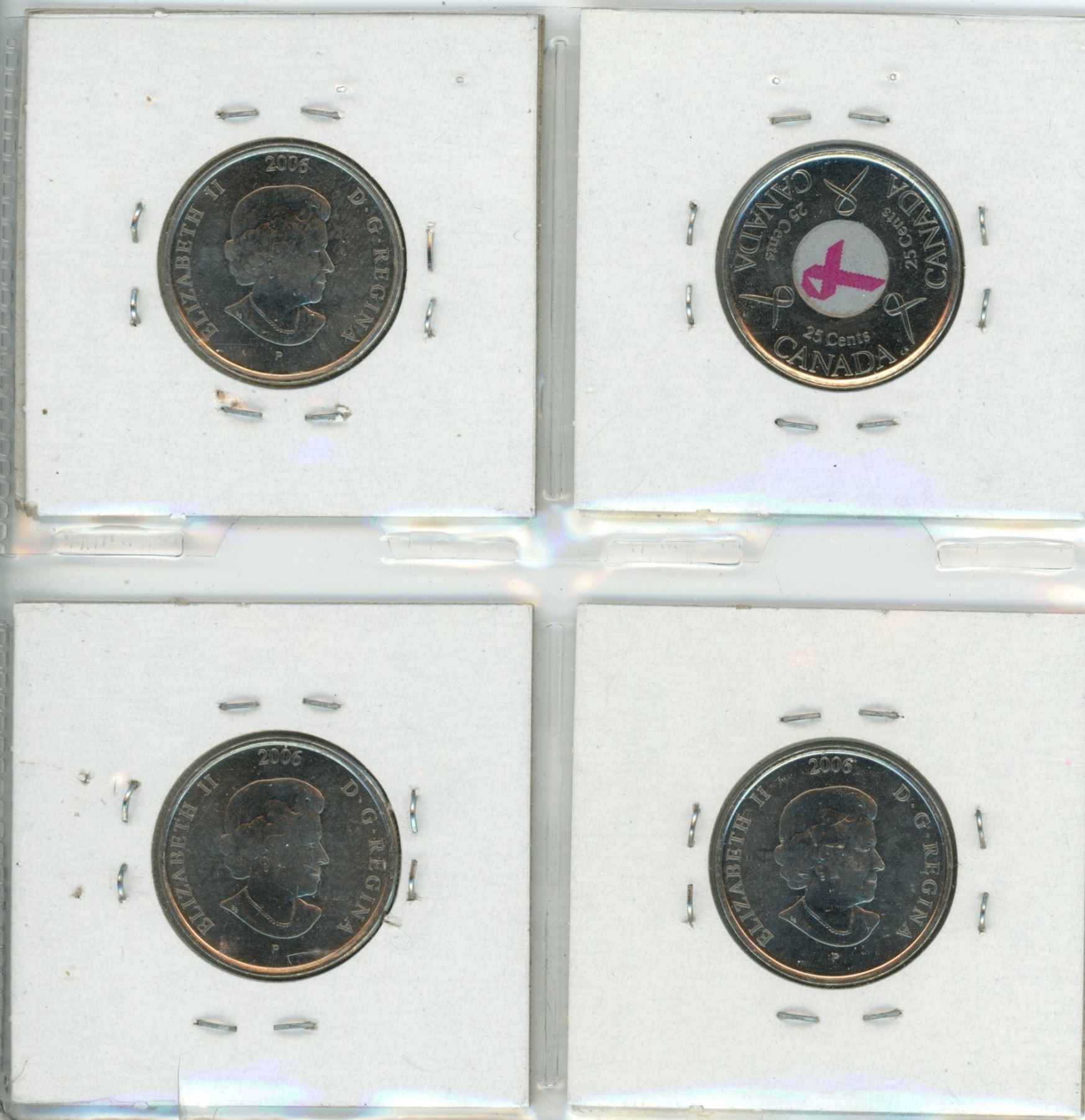 Lot of four 2006 Canada 25¢ twenty five cents Breast Cancer Awareness