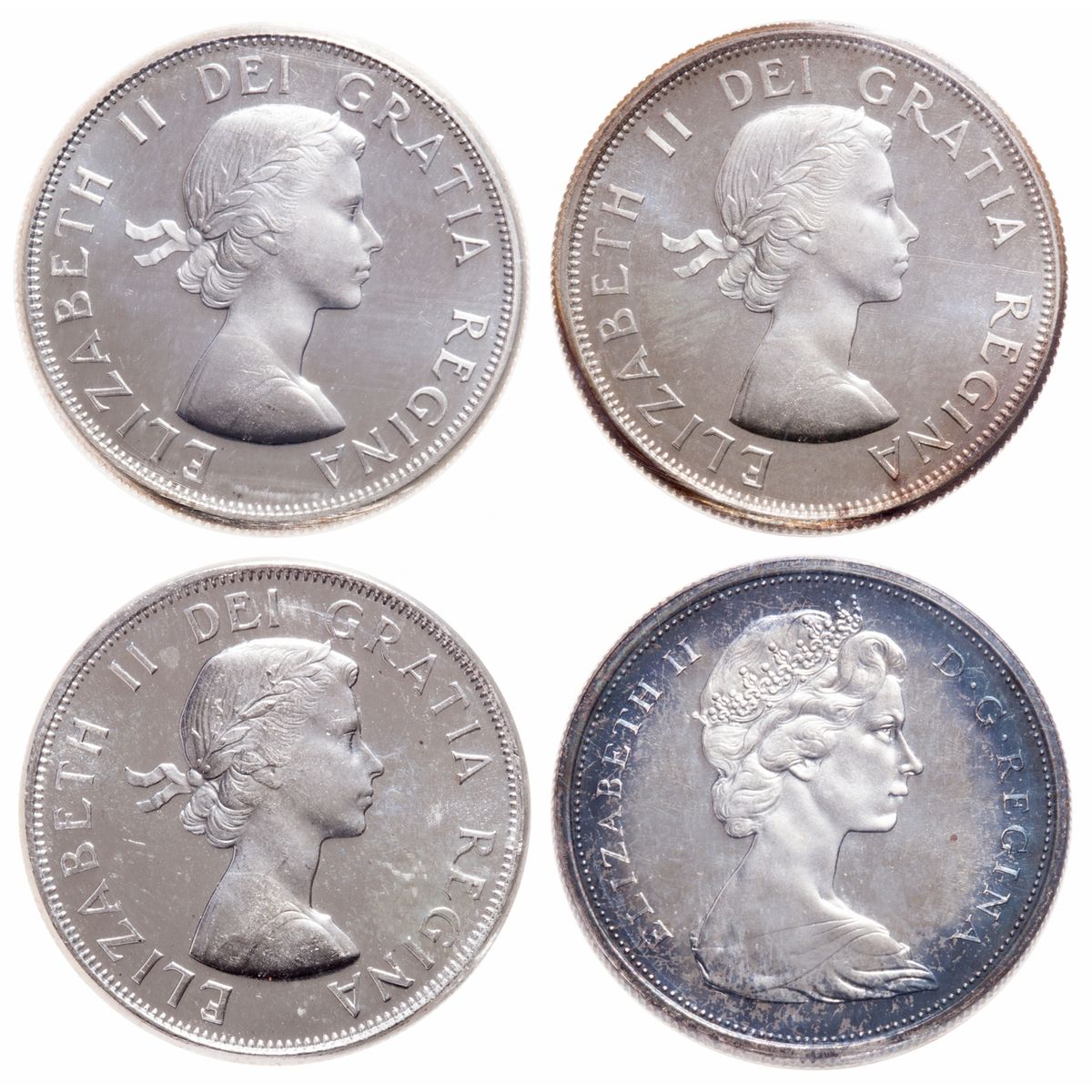 Lot of four (4) ICCS Elizabeth II 50 cents, including: 1960 PL-66 Ultra Heavy Cameo; 1961 PL-66 Ultra Heavy Cameo; 1964 MS-65 Heavy Cameo; 1967 SP-67 Heavy Cameo.