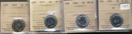 Lot of four ICCS graded MS64 pieces. Includes a 1944, 1945, 1948 and a 1954 SF.
