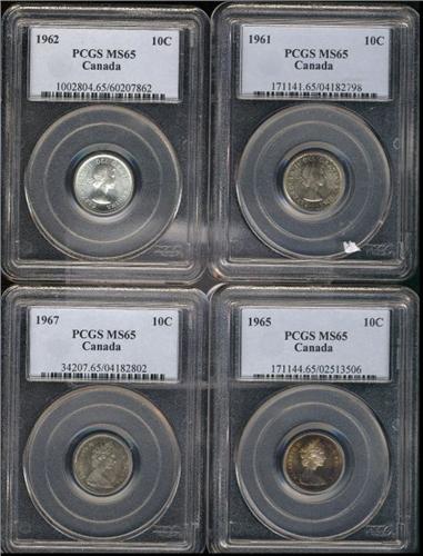 Lot of four PCGS MS65 graded coins. Includes a 1961, 1962, 1965 and a 1967. Three pieces are nicely toned.