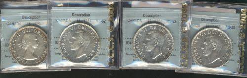 Lot of four "Small Water lines" variety coins. All CCCS graded as follow: 1950 "SWL MS-62", 1951 "SWL MS-62", 1952 "SWL AU-55", 1954 "SWL AU-55".