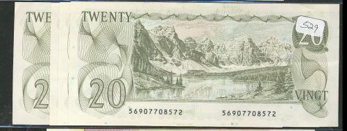 Lot of four sequential 1979 $20 notes. BC-54ci Thiessen-Crow. AU-UNC