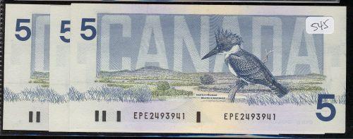 Lot of four sequential 1986 $5 notes. BC-56b Thiessen-Crow. All Gems!