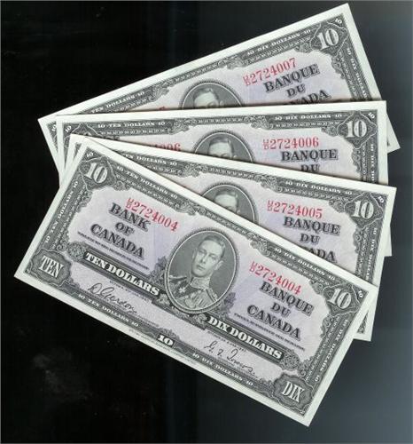 Lot of four sequential notes. BC-24b 1937 $10 Gordon-Towers U/D2724004/4007. Choice uncirculated.