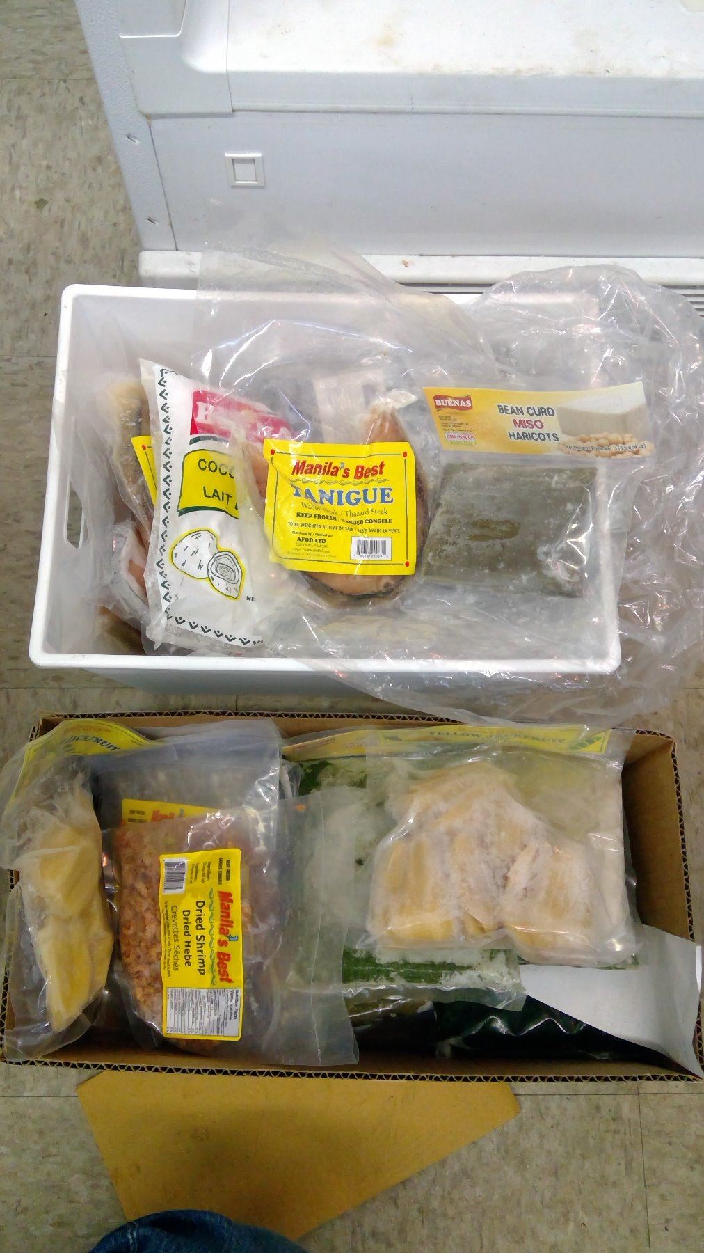 Lot of frozen, palm heart, cassava leaves, jackfruit, shrimps, etc