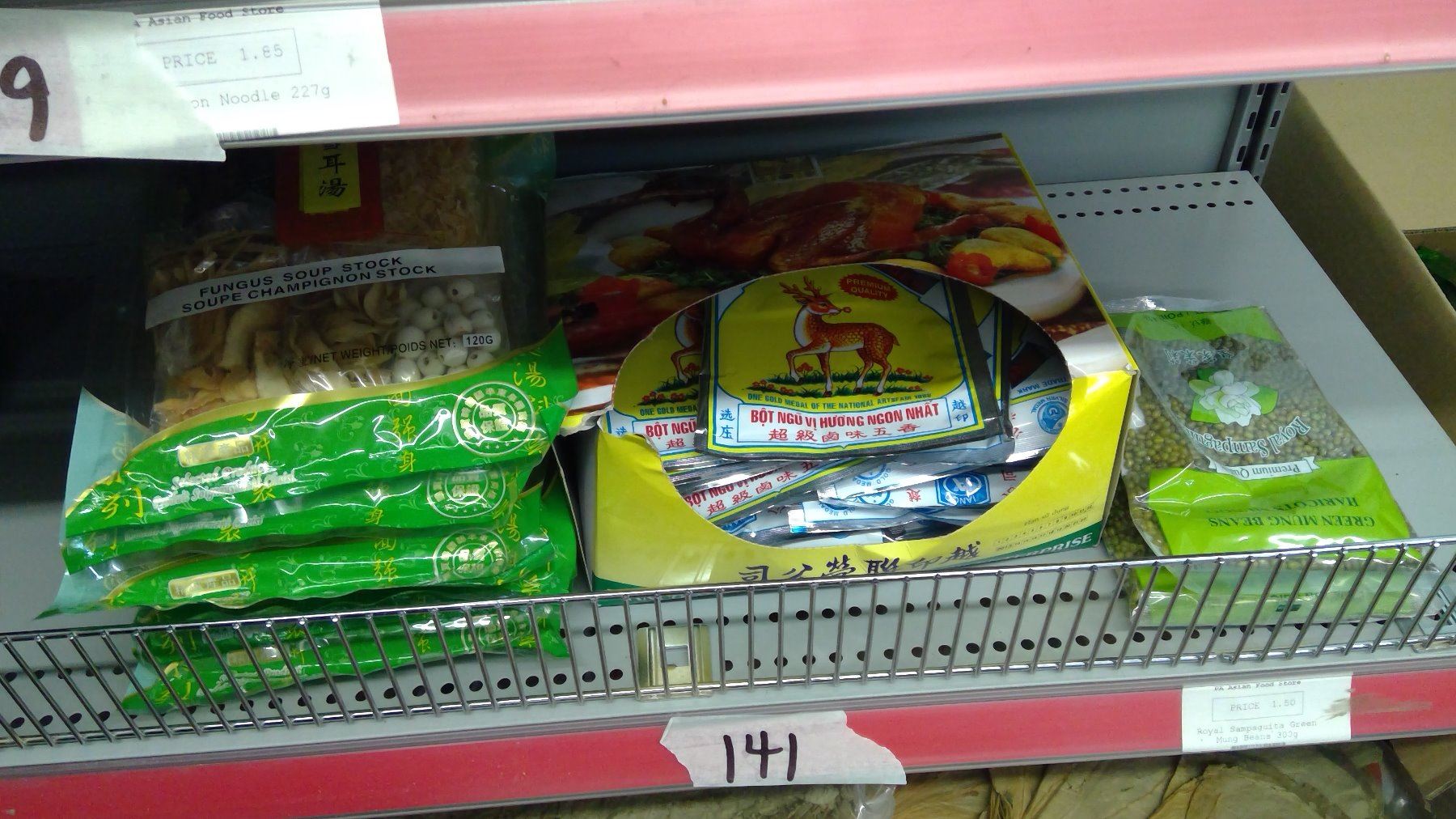 Lot of fungus soup stock (6), case of five spice powder, green mung beans (2)