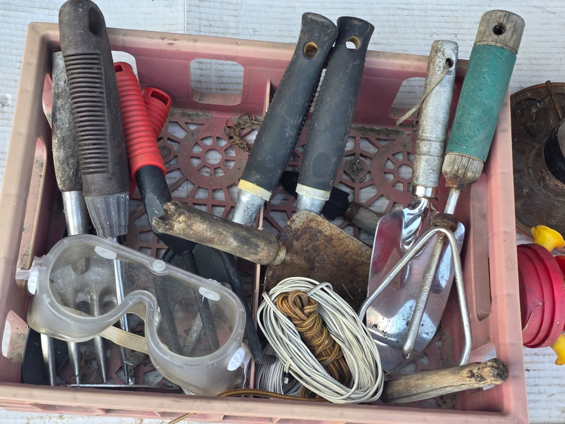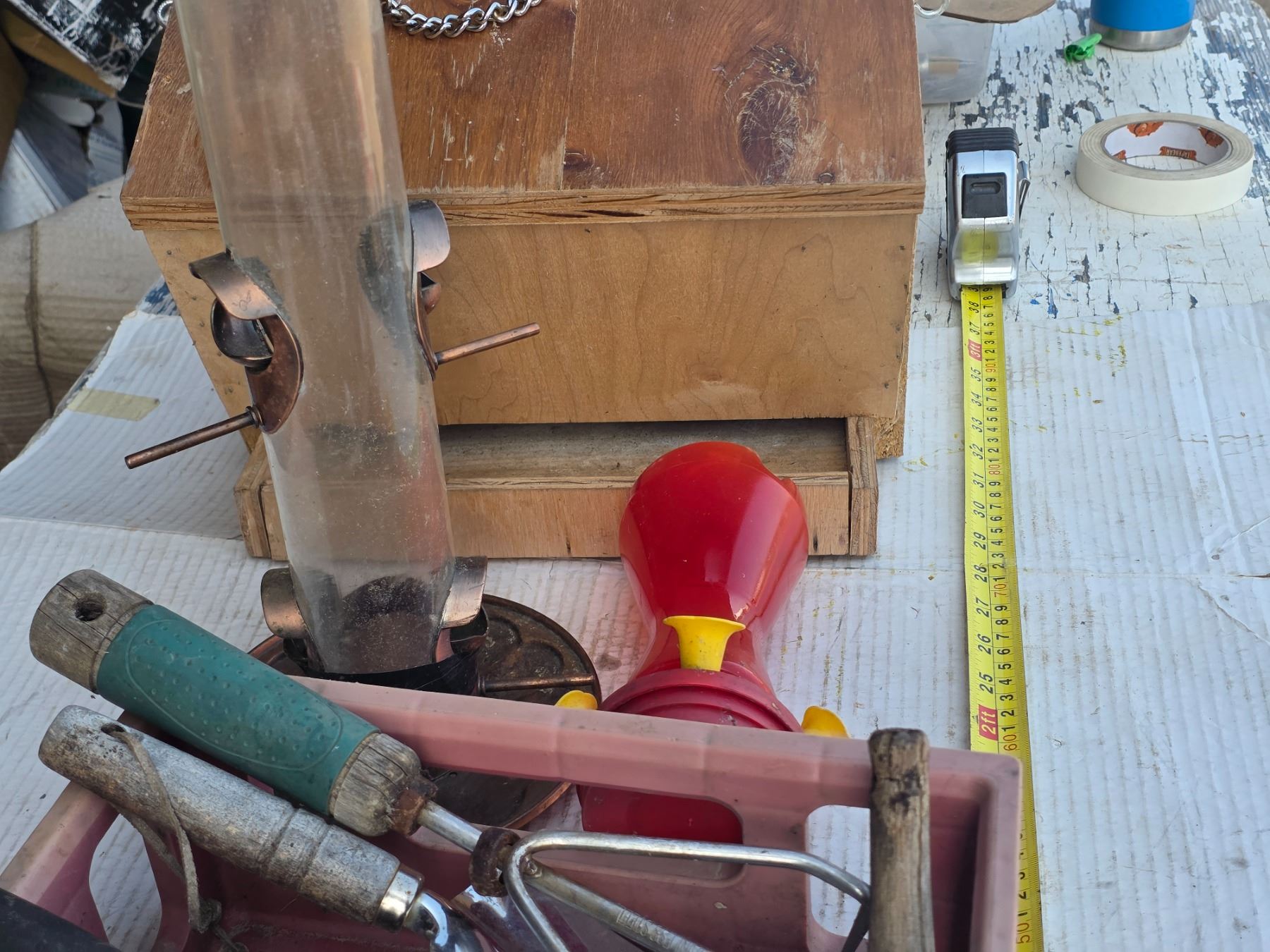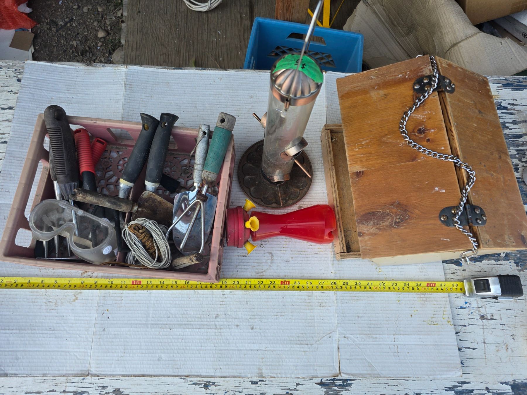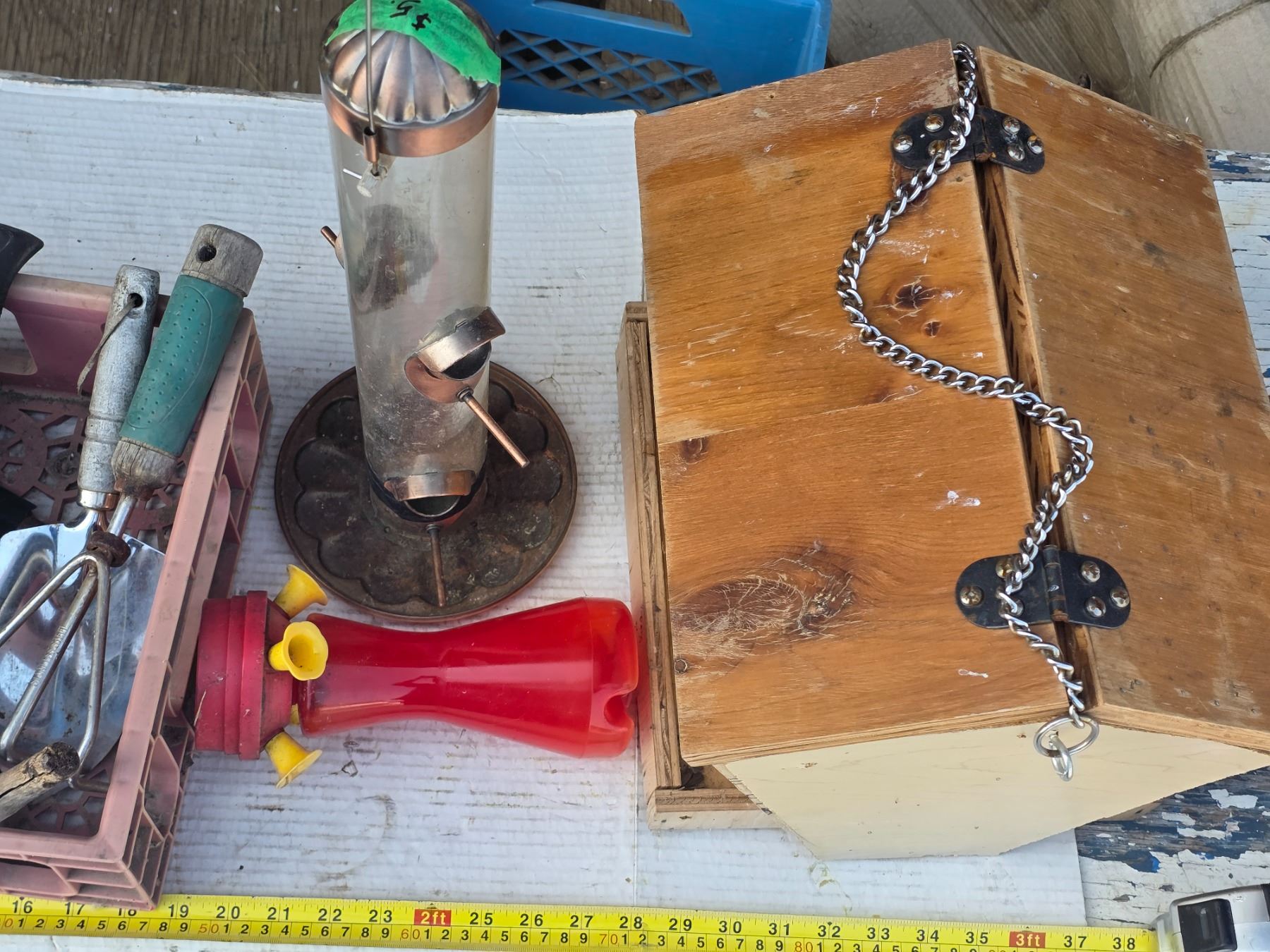 Lot of gardening tools and bird feeders