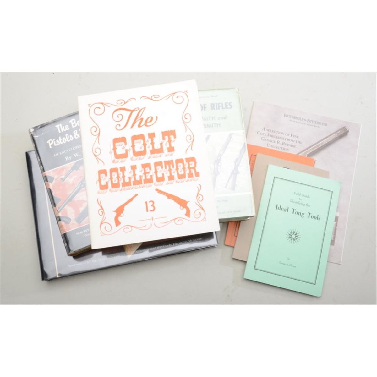 Lot of gun and gun-related reference books numbering approx. 30+ including The Guns Of Remington, by Madaus and Goodwin; The Book of Rifles and The Book of Pistols and Revolvers by Smith; several brochures on militaryweapons; Carl Hellstrom’s “Smith & Wesson, The Story of the Revolver”; several Ideal tool handbooks of useful information, etc. Est.: $150-$250.