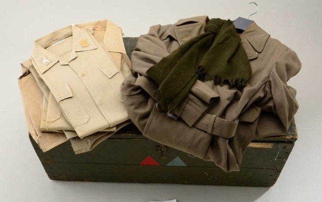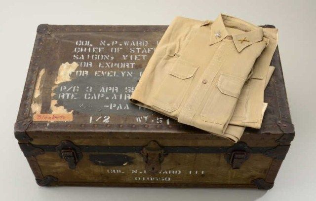Lot of military relics of Colonel Nathaniel P. Ward III. This large grouping of items spans from WW II to the early advisory period of Vietnam. During WW II then Lt. Colonel Ward served with elements of the 1st, 2nd and 4th Armored Divisions in Europe and was Commander of the 637th Tank Destroyer Battalion in the Philippines. There are double buckle combat boots, brown capped toe boots, HBT coveralls, HBT “Ike” jacket, avery nice M41 Parsons jacket with Lt. Col. Insignia and an M43 jacket with an Australian made 1st Cavalry patch among other items. After tours at the Pentagon and General Staff College, Colonel Ward went to Vietnam in1958 and served as Senior Advisor at Ban Me Thuot in the Central Highlands. Several of the khaki shirt and pants sets are extremely rare. There are two stools made from duck baskets and a table made from a fish trapthat were used as furniture at the Bungalow, which was the Advisory Group’s headquarters in Ban Me Thuot. The Bungalow burned down in 1969, so these pieces of furniture the Colonel took back as souvenirs are extremely