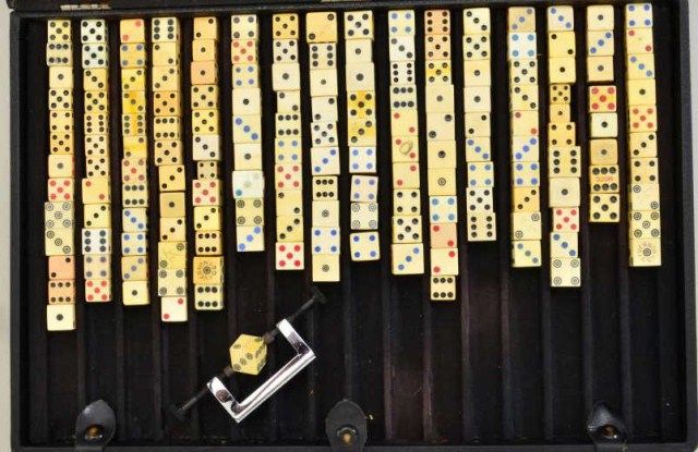 Lot of misc. grips, molds, powder measuring devices, patch cutters, etc.; a neat grouping of three plastic trays of the material, mostly antique, powder measurers are mostly graduated; grips include checkered medallionwood for Colt Das, checkered hard rubber for the Bisley Colt, J-frame S&W checkered wood medallion grips; a spring vice, a small priming horn and other little goodies. Est.: $250-$450.